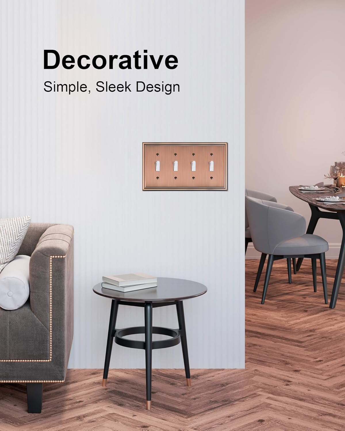 - Timeless Appeal - The 4 light switch cover plate features simple, clean lines and a sleek, modern design. Antique copper finish adds a touch of warmth and elegance to any space, creating a sophisticated yet stylish ambiance that enhances the overall aesthetic of any room.