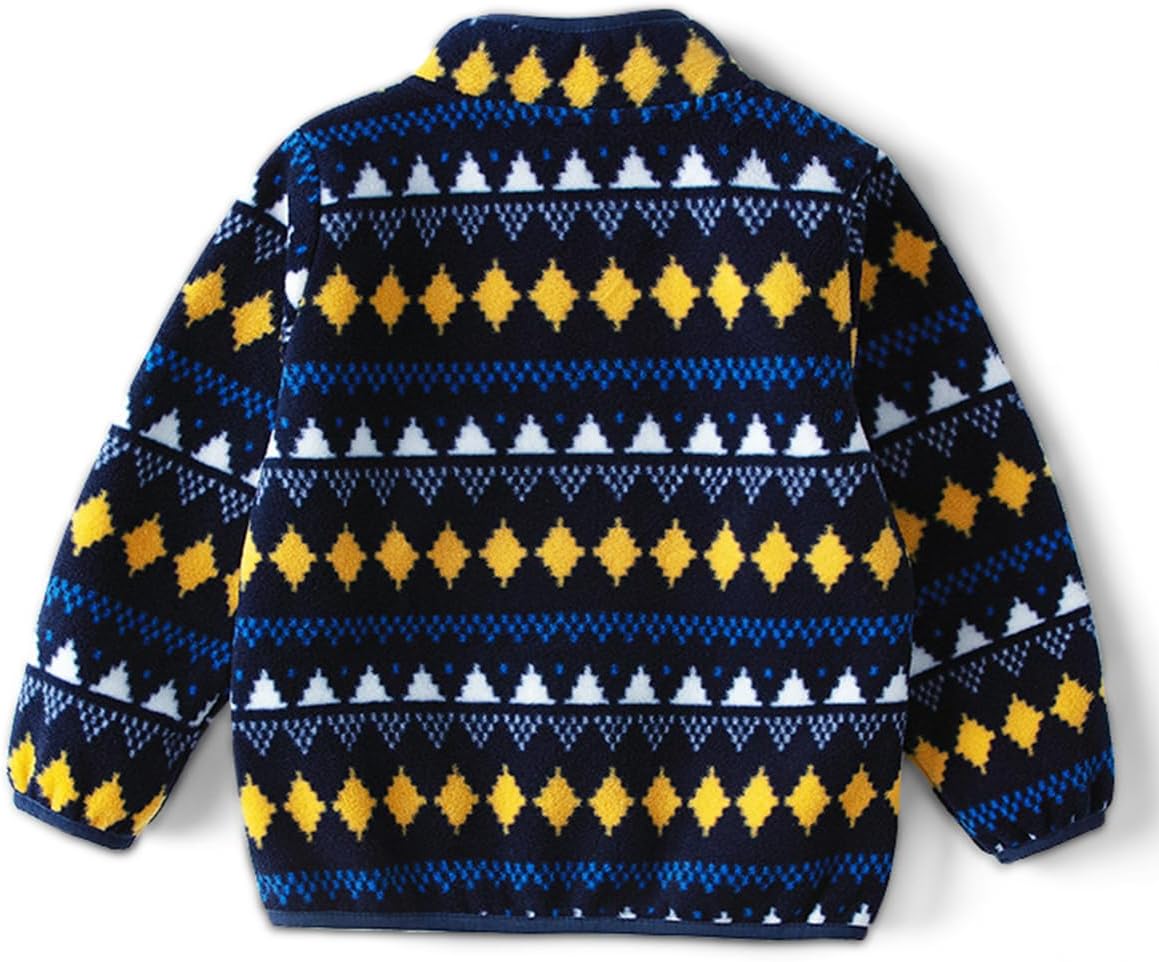 Kids Printed Polar Fleece Jacket Toddler Baby Boys Girls Autumn Winter Warm Sherpa Lining Outerwear Soft Lightweight
