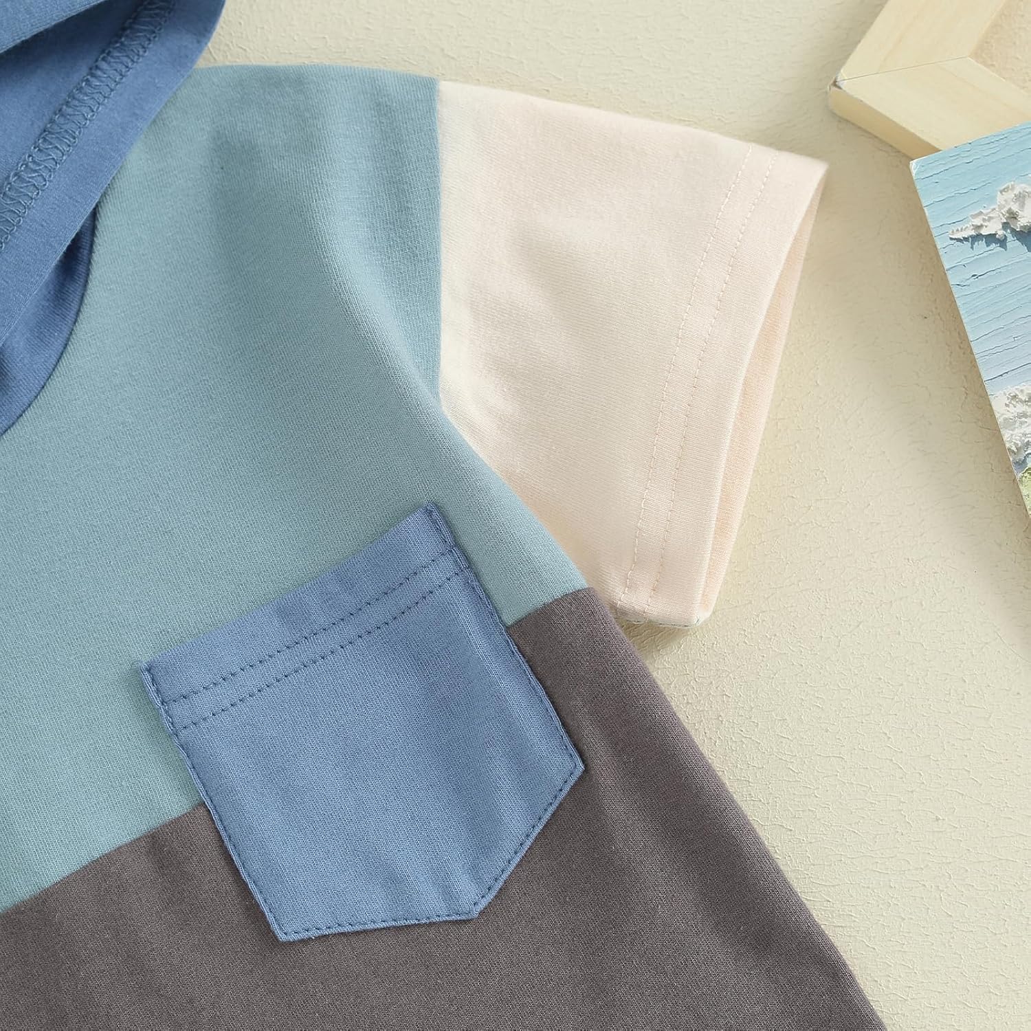 Toddler Baby Boy Summer Hooded Outfit Contrast Color Short Sleeve T Shirt Top Elastic Shorts Summer Clothes Set