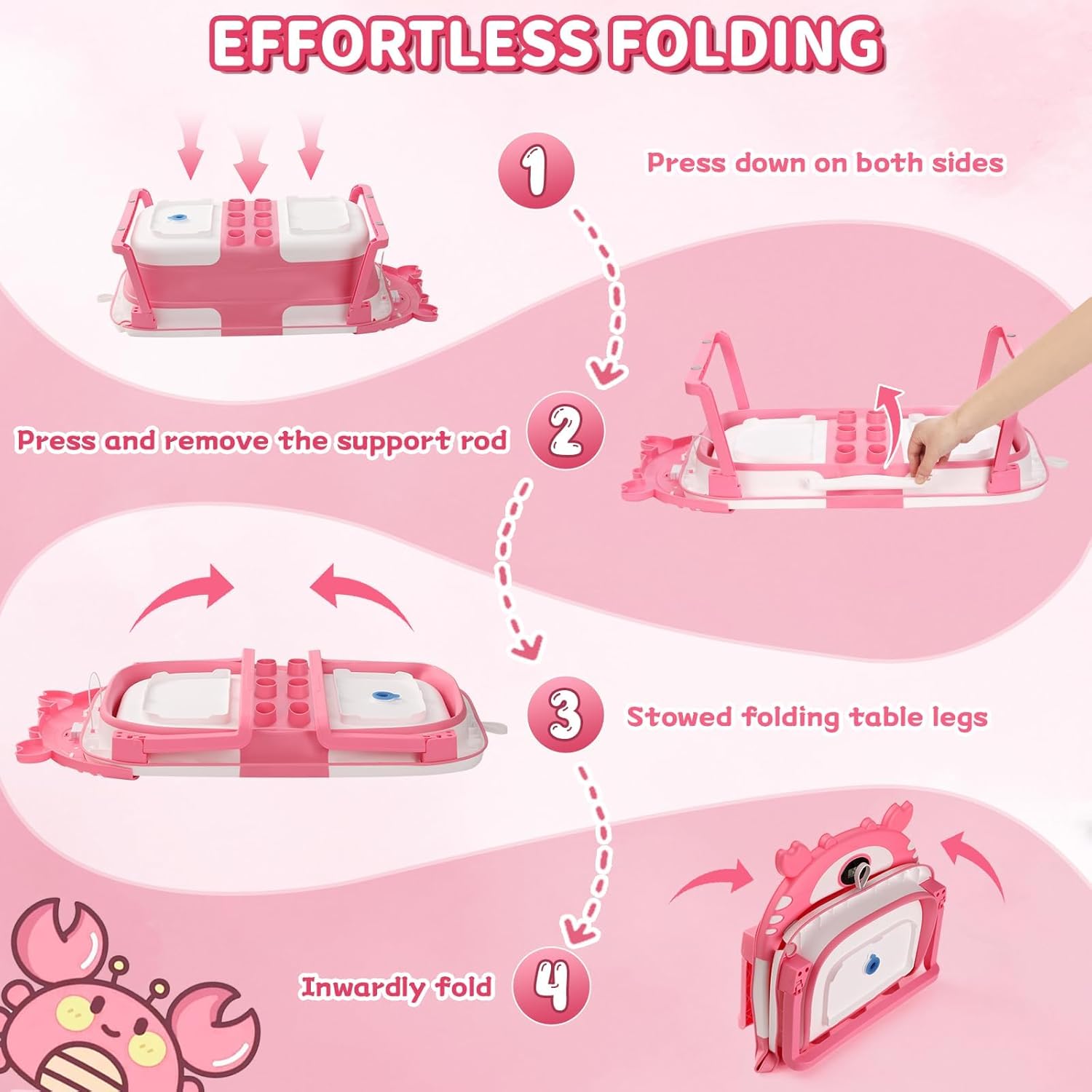 Baby Bathtub,Collapsible Baby Bath Tub with Thermometer & Soft Floating Cushion,Portable Travel Baby Bathtubs for Newborns to Toddlers 0-36 Months(Crab Pink)