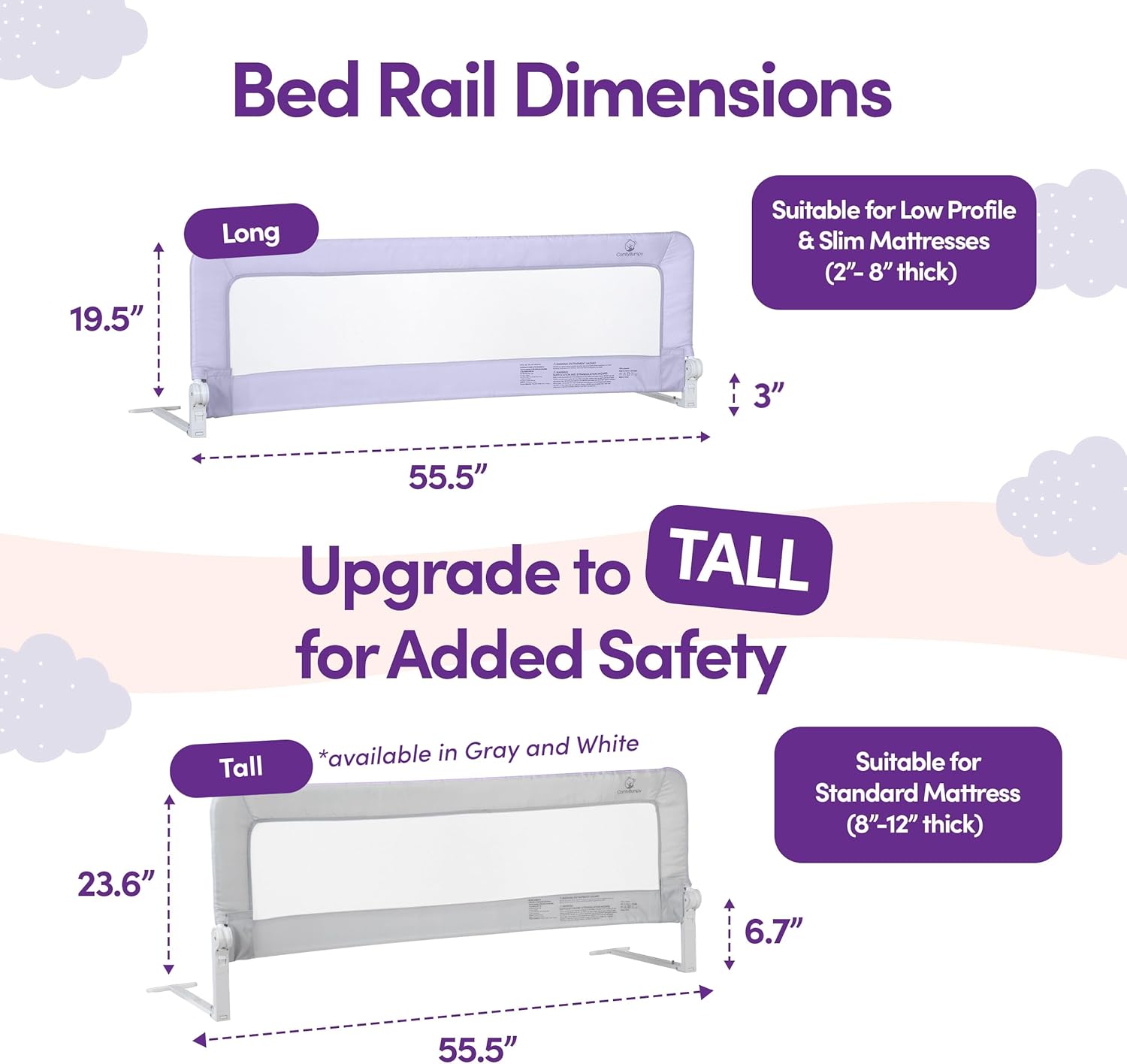 - ULTIMATE BED COVERAGE — 55.5″L × 19.5″H extra-long rail fits low profile mattresses (2” – 8″ thick) across Twin, Full, Queen & King beds; delivers secure, gap free protection for growing kids.