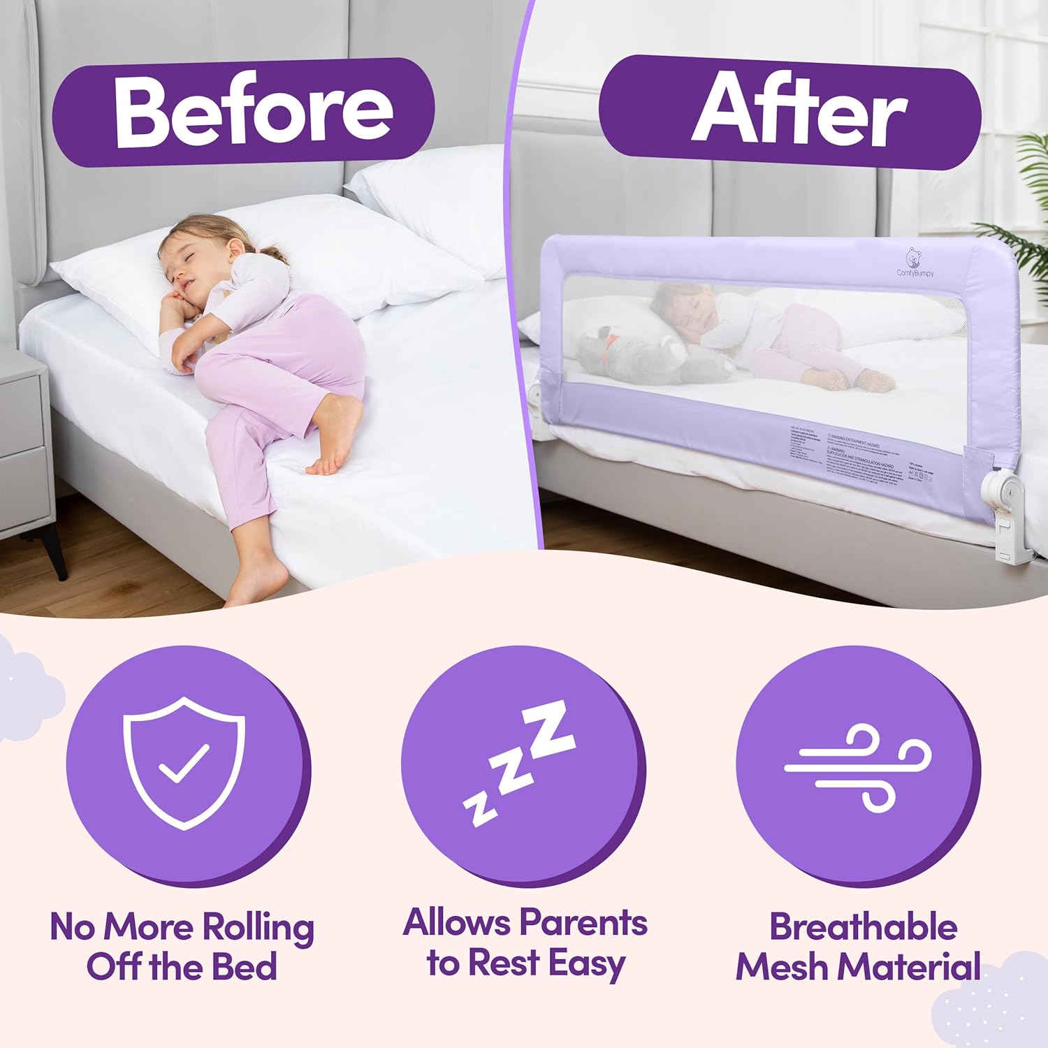 ComfyBumpy 1-Pack Bed Rail for Toddlers 55.5" L x 19.5" H | Toddler Bed Rails for Twin, Full, Queen & King Mattress Size | Swing Down Rail Guard | Mattress Side Rail for Kids | Purple