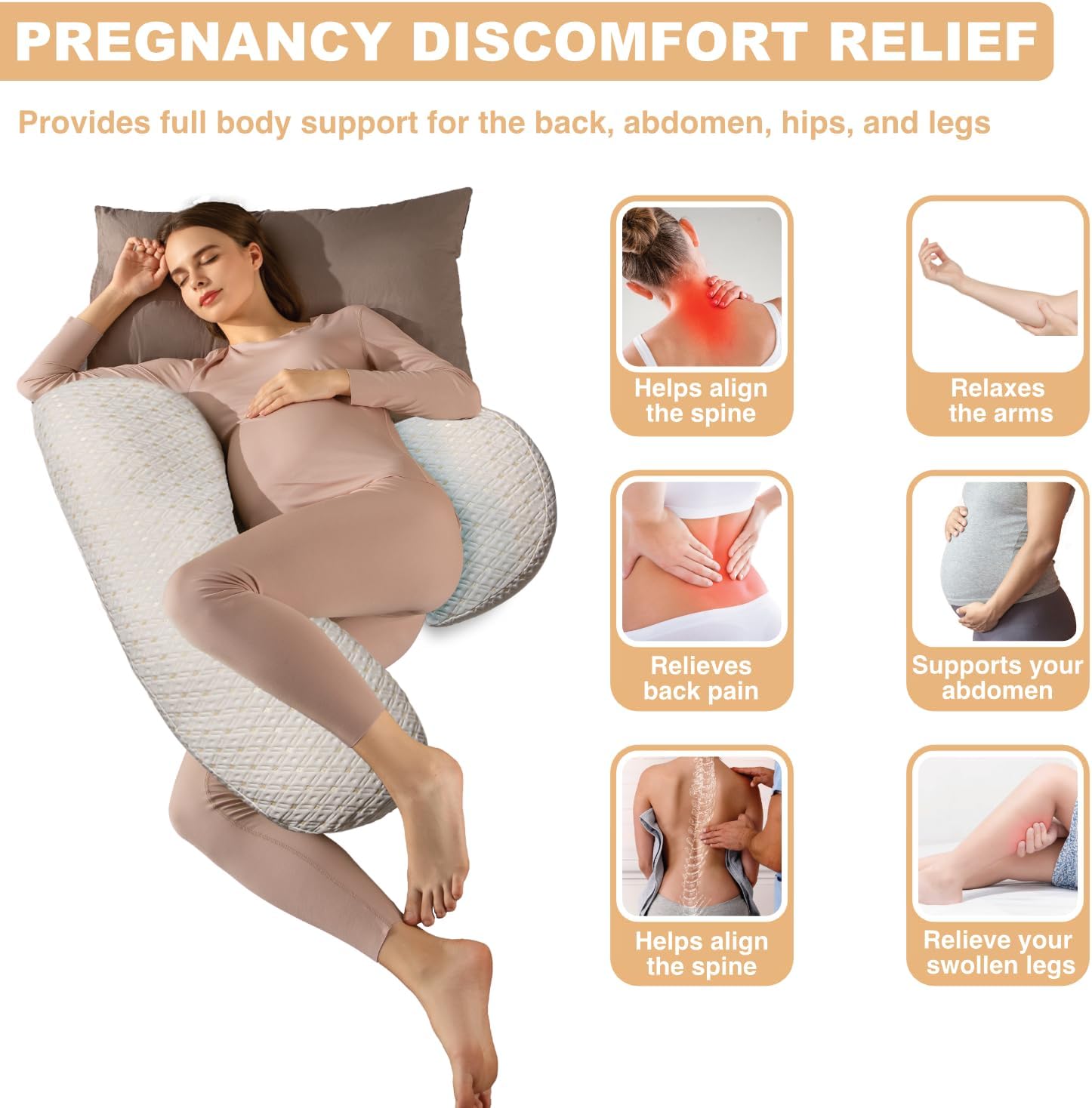 Pregnancy Pillow, Maternity Pillow with Detachable & Adjustable Pillow Cover, Full Body Pillow for Adults Sleeping, Support for Back, Belly, Legs, HIPS, Pregnancy Must Haves