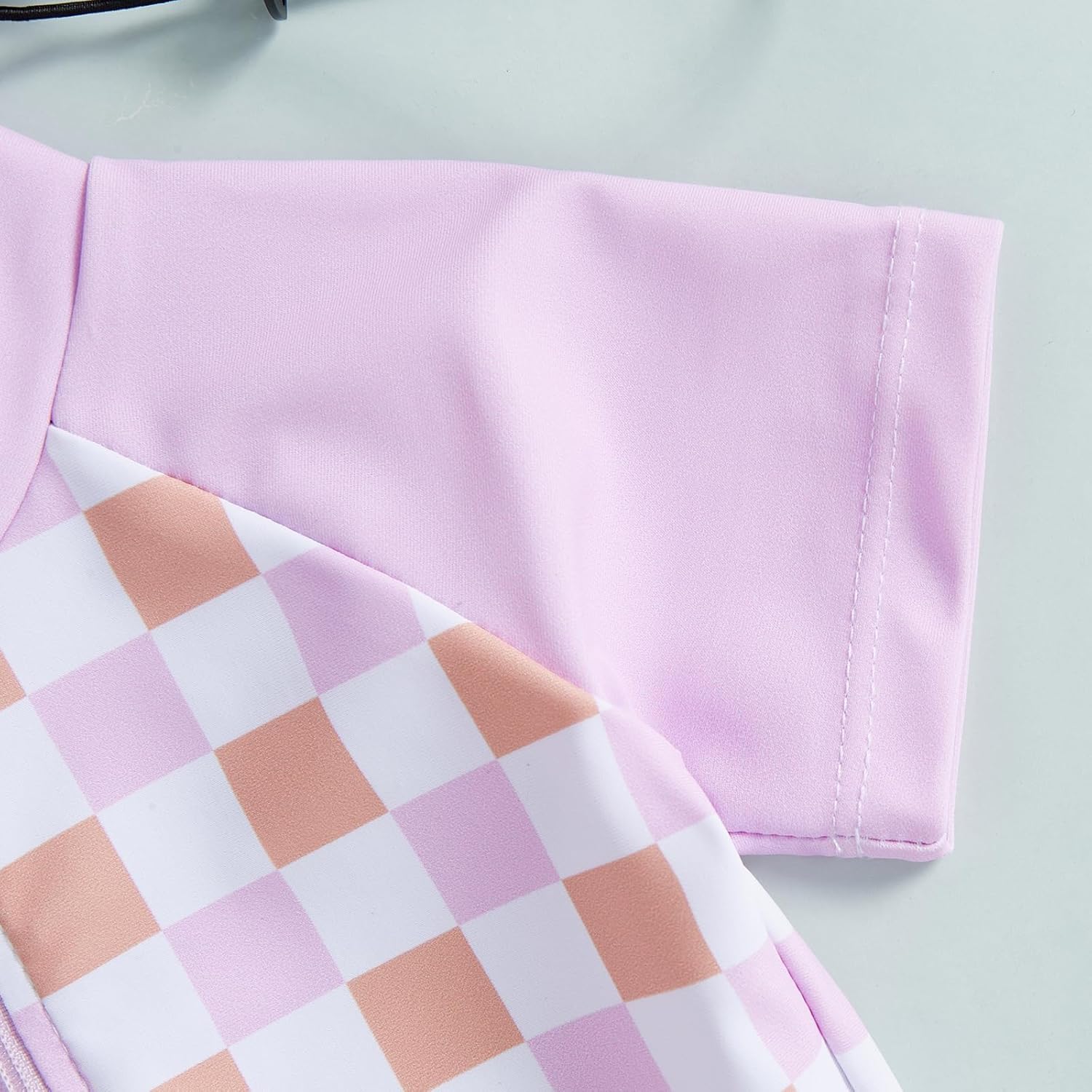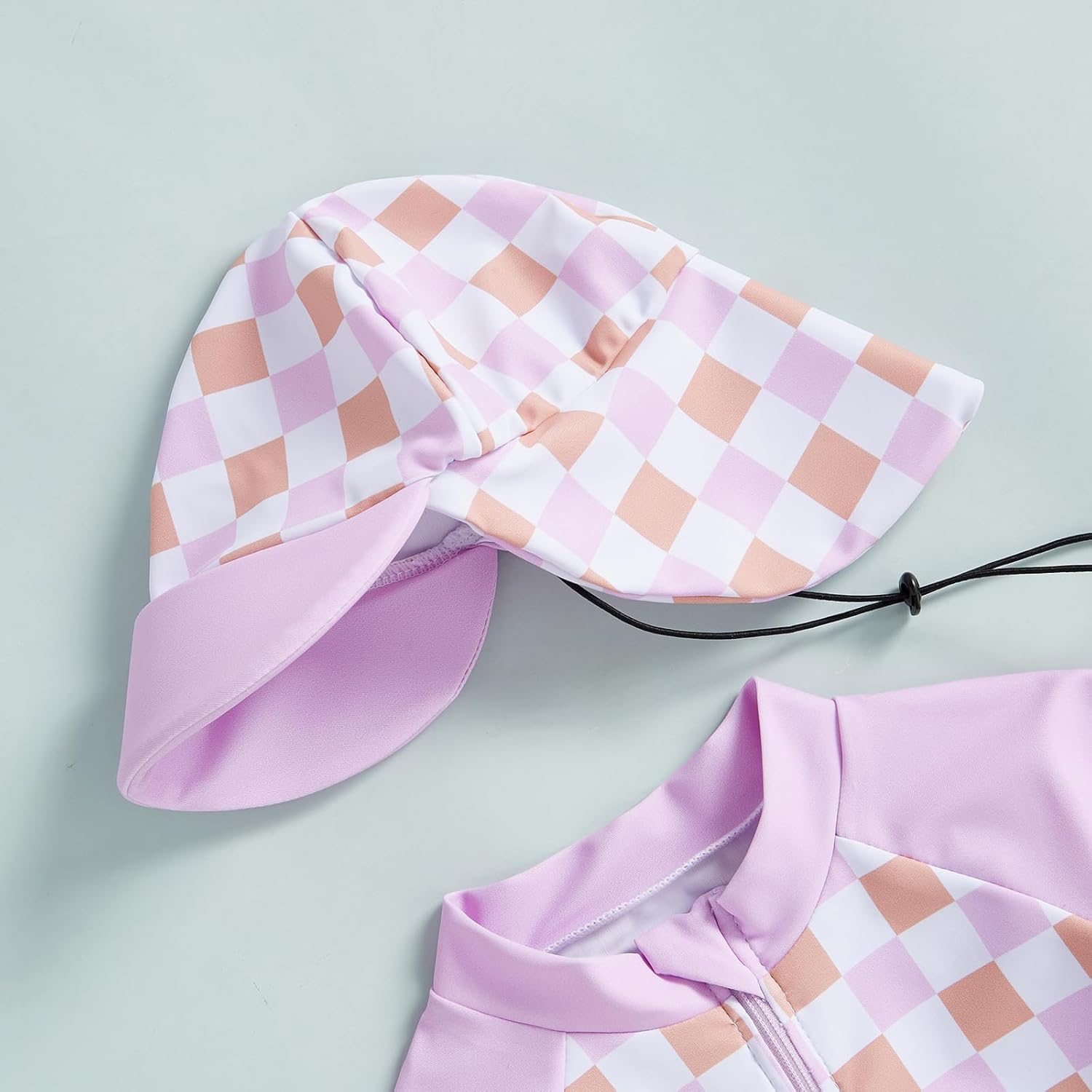 - KIDS BEACHWEAR: Baby boy rash guard swimsuit; Baby girls rash guard swimsuit,baby boy bathing suit classic plaid print, adding a fashionable touch; Short sleeves and round neck, front zipper closure, easy to put on and take off; And hat set, perfect for summer wearing