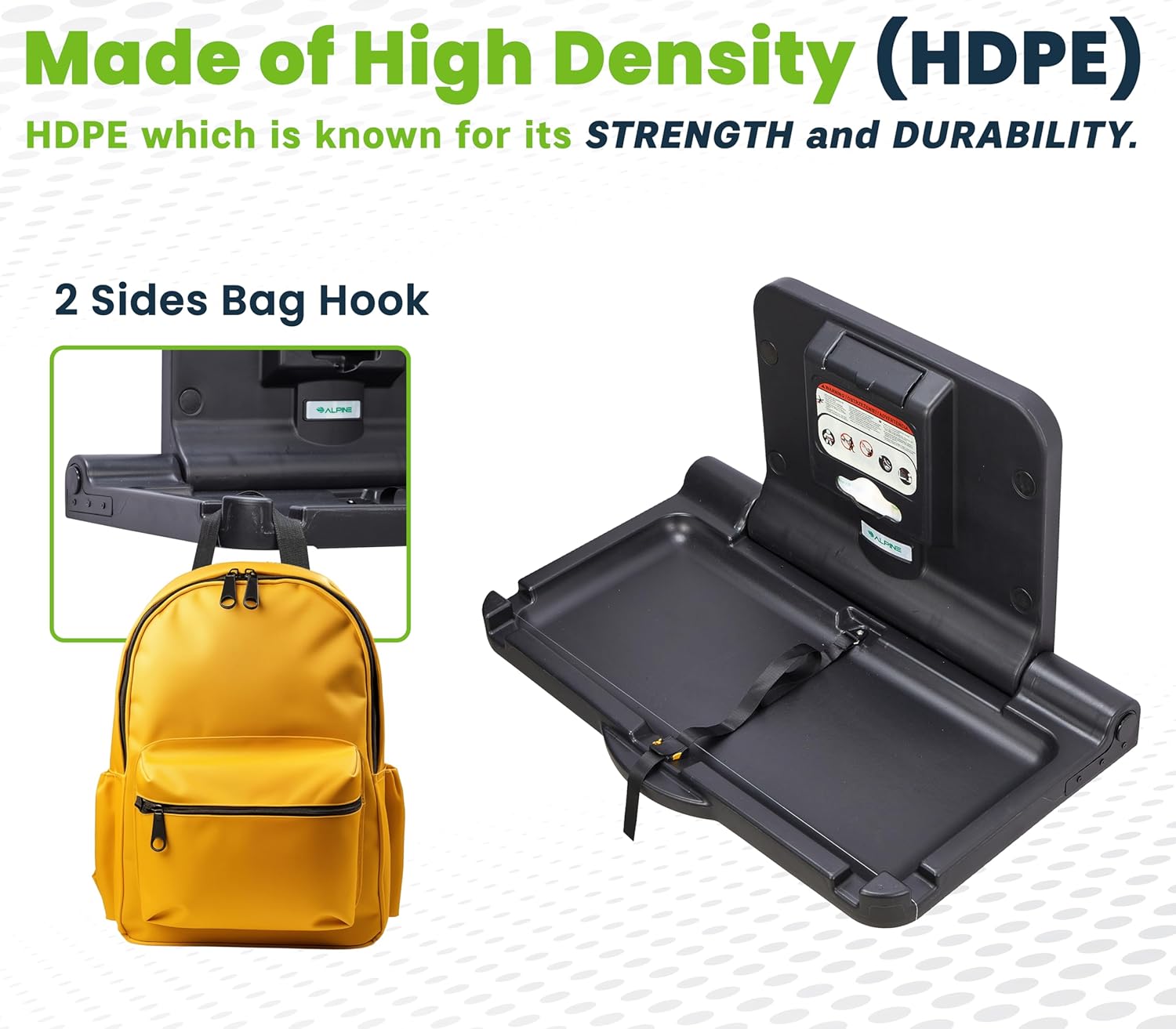 - With two side bag hooks, the Alpine baby changing station provides wide storage space and makes it easy for parents to keep their belongings within reach while changing their baby. We are confident you'll love it!