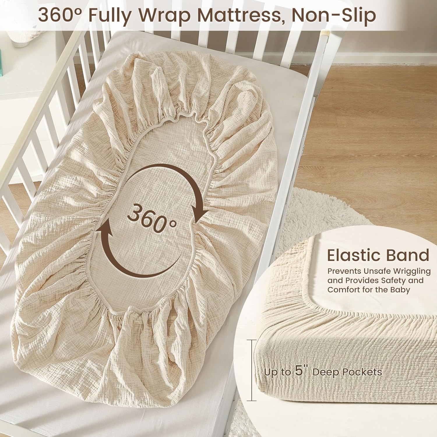 - 100% Muslin Cotton: Our crib sheets are made of 100% muslin cotton, ultra soft, gentle and skin-friendly, perfect for delicate baby skin. 2-Layer muslin cotton features better moisture absorption and breathability, prevent over-heating, help keep baby feel refreshed and comfort all year round, and perfect for summer use.