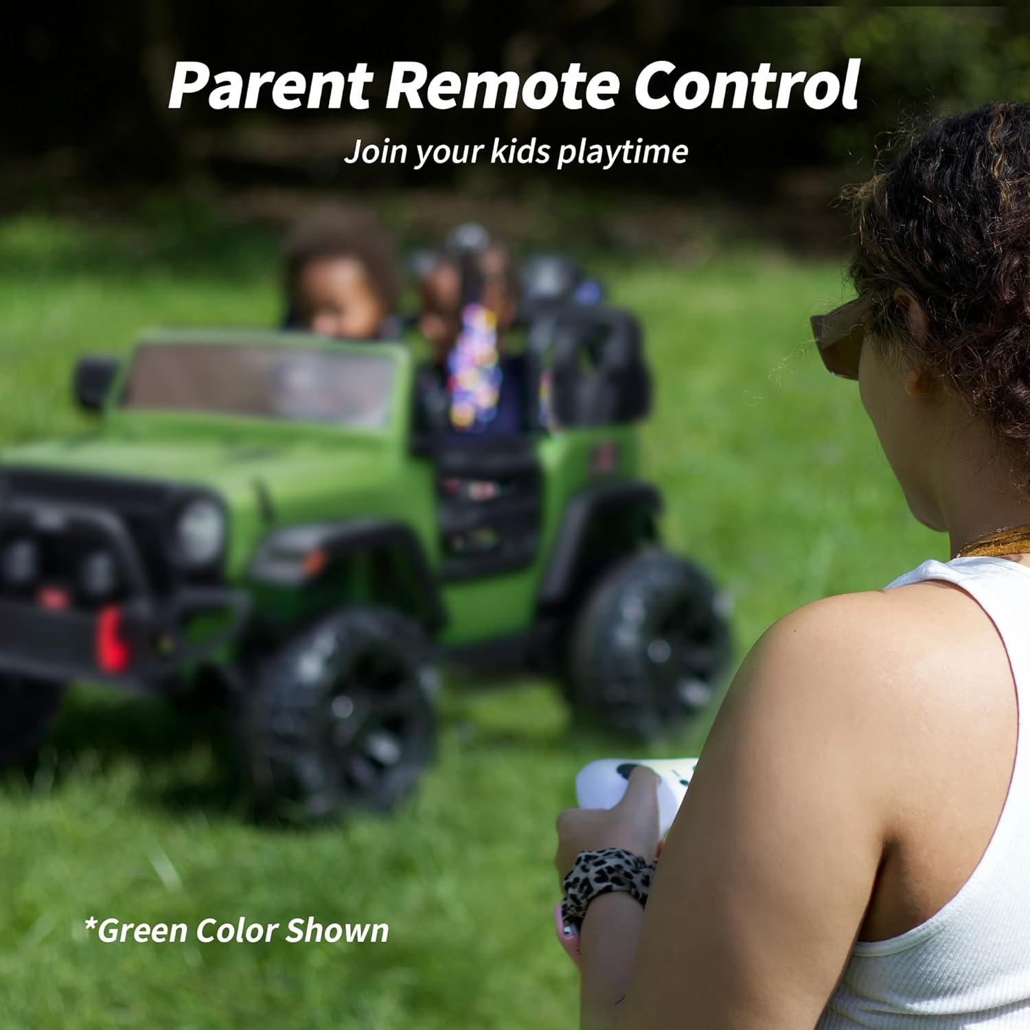 - POWERFUL PERFORMANCE: This 24V big kids ride-on car with remote features strong 4x200W motors. The switchable 2WD/4WD mode ensures it's perfect for any terrain, providing a thrilling and fun riding experience.