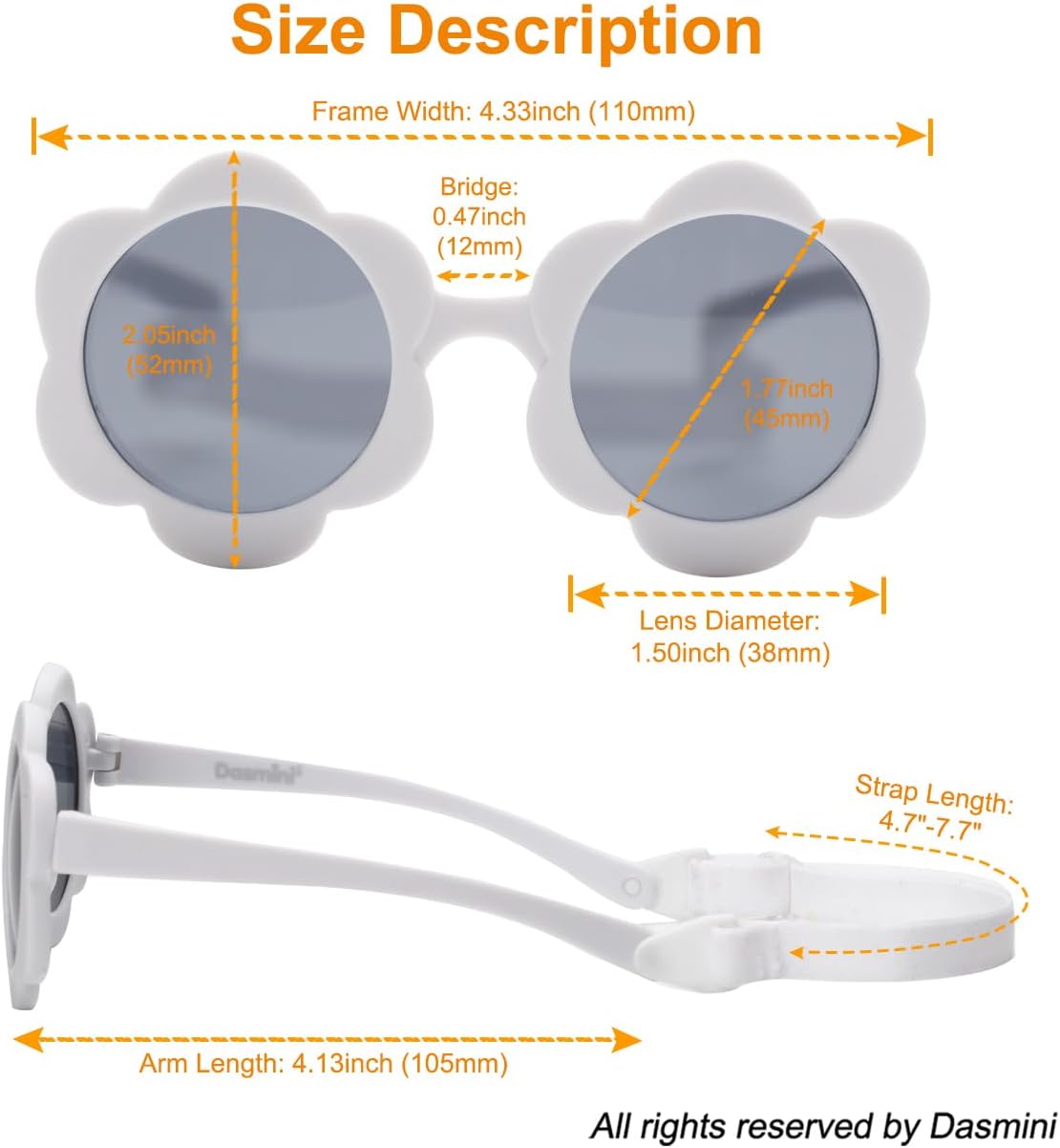 - SUN HAT AND SUNGLASSES SET:Our cute sunflower white baby sunglasses matches our white seersucker sun hat very well.We offer this sunhat with sunglasses set for 0-6 months and 6-24 months only.The baby sunglasses frame is made with TPEE material that is Flexible.It is Lightweight and Comfortable.With an Adjustable Secure Strap,you can adjust to baby's head size for an excellent fit and stays on baby's face.