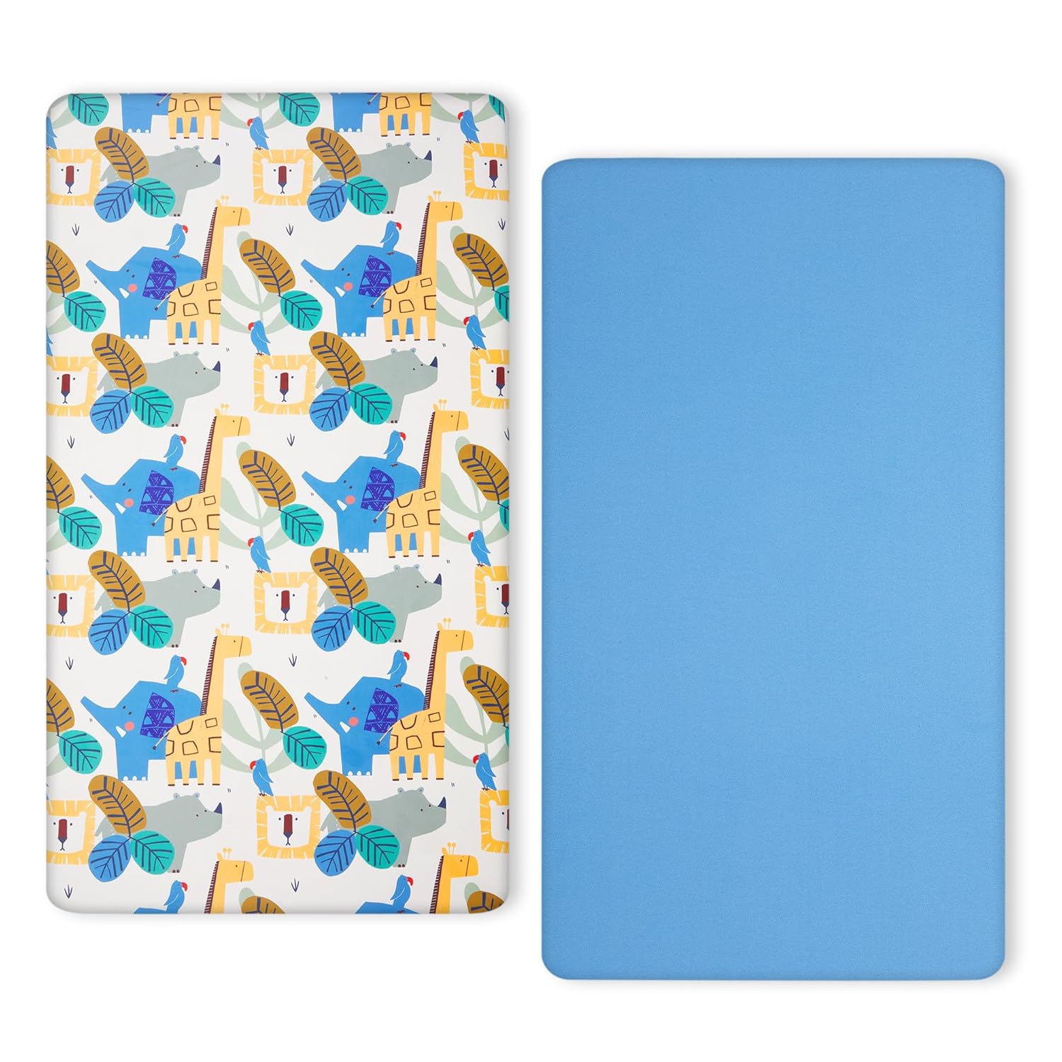 TILLYOU Baby Crib Sheets for Boys Girls, Super Soft Toddler Bed Sheets, 2 Pack Sheets for Standard Crib Mattress 28x52in, Animal Geometry