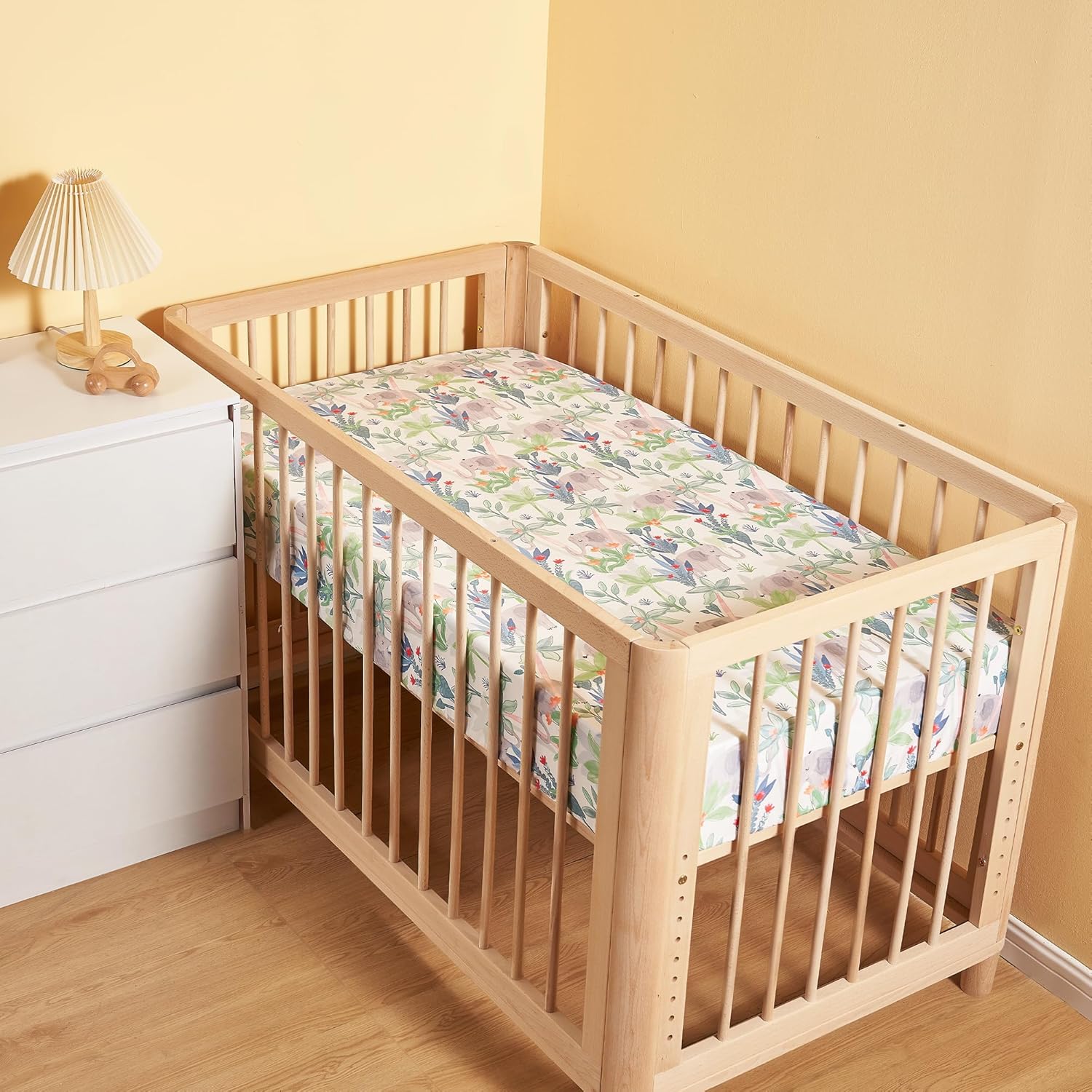 TILLYOU Baby Crib Sheets for Boys Girls, Super Soft Toddler Bed Sheets, 2 Pack Sheets for Standard Crib Mattress 28x52in, Rainforest Elephant
