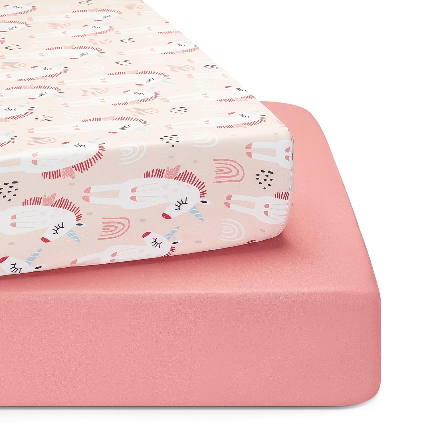 TILLYOU Baby Crib Sheets for Boys Girls, Super Soft Toddler Bed Sheets, 2 Pack Sheets for Standard Crib Mattress 28x52in, Pony Pink