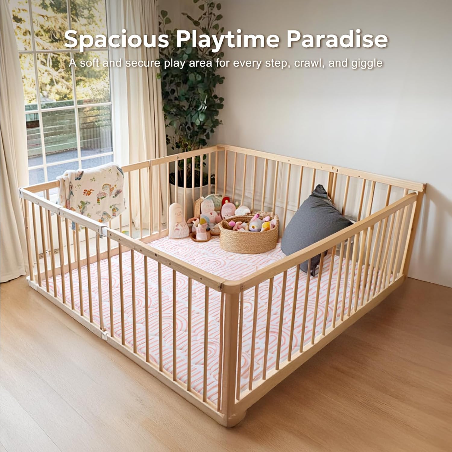 - CERTIFIED SAFETY: Our baby play mat features a non-slip bottom with silicone dots, ensuring it stays securely in place during use. The 1-inch thickness offers ample support while providing a soft, comfortable surface that promotes safety and comfort for your baby. In addition, our playpen mat meets all relevant safety regulations and has passed tests for phthalates, lead, and toxicity, providing peace of mind