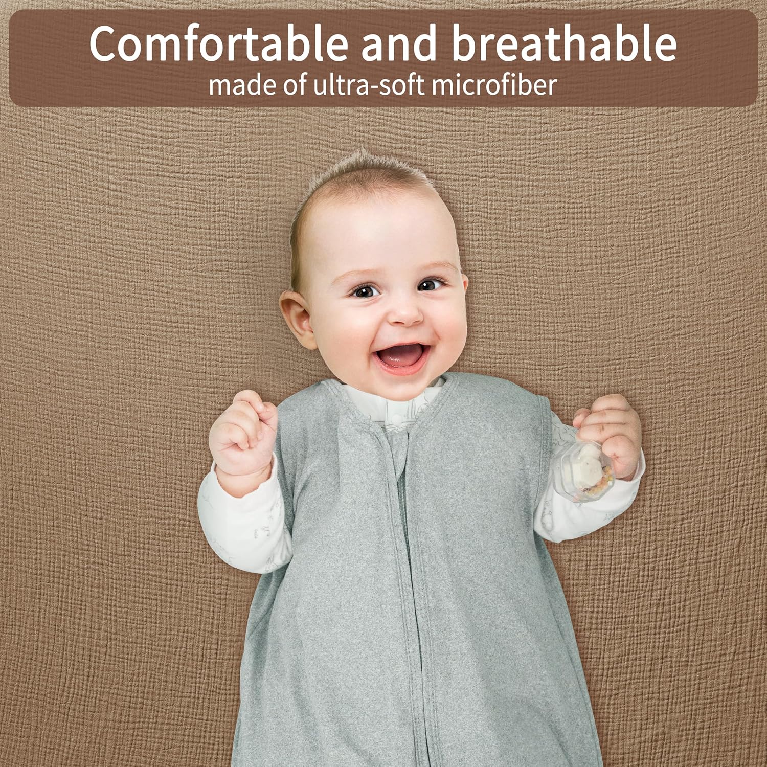 Muslin Crib Sheets for Boys Girls 100% Cotton Fitted Baby Crib Sheet 2 Pack Soft and Breathable for Standard Crib Mattress & Toddler Mattress 52x28in (Beige & Coffee)