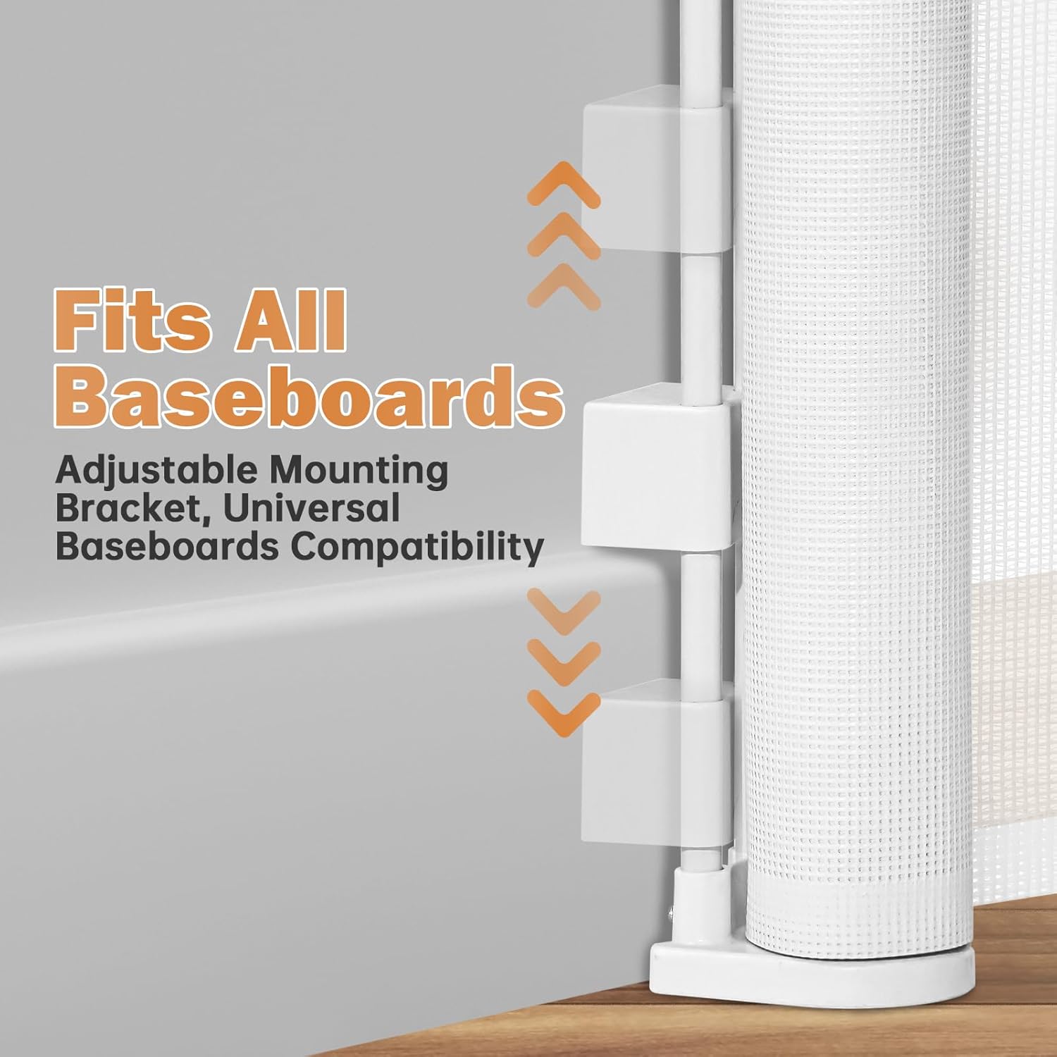 - 【Easy Installation】Installation is easy with adjustable sliding brackets that fit any baseboard without the need for additional shims. Installs quickly in just a few minutes. Note that it should not be installed on drywall and requires drilling, providing a safer option compared to non-drilling baby gates.