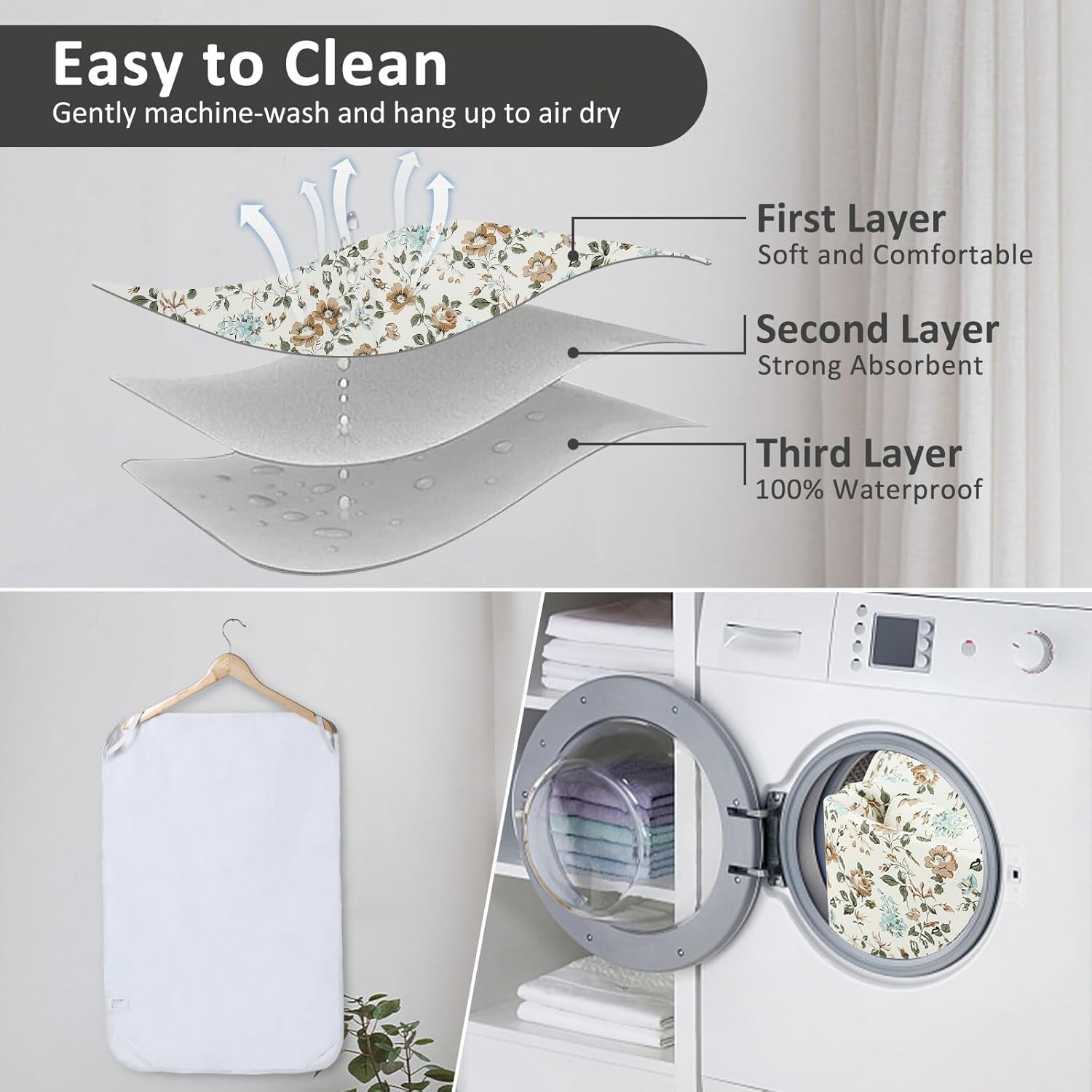 Baby Diaper Changing Pad, 21 5/8" x 31.5" Waterproof Changing Pad Liners - Reusable Soft and Absorbent Portable Changing Mat(Blue Flower1PCS)