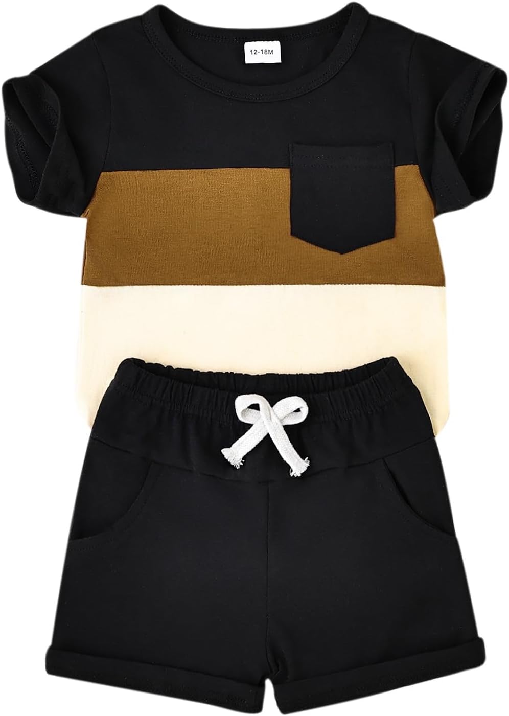 • ✯ Fashion Stitching and Contrasting Color Design: The top t-shirt has a cute little pocket in the front and comes in a variety of contrast colors, giving your sweet toddler baby boy a stylish look this summer. The solid shorts feature a high-quality elastic waistband and convenient side pockets, perfect for your little guys to put things such as while on the go.