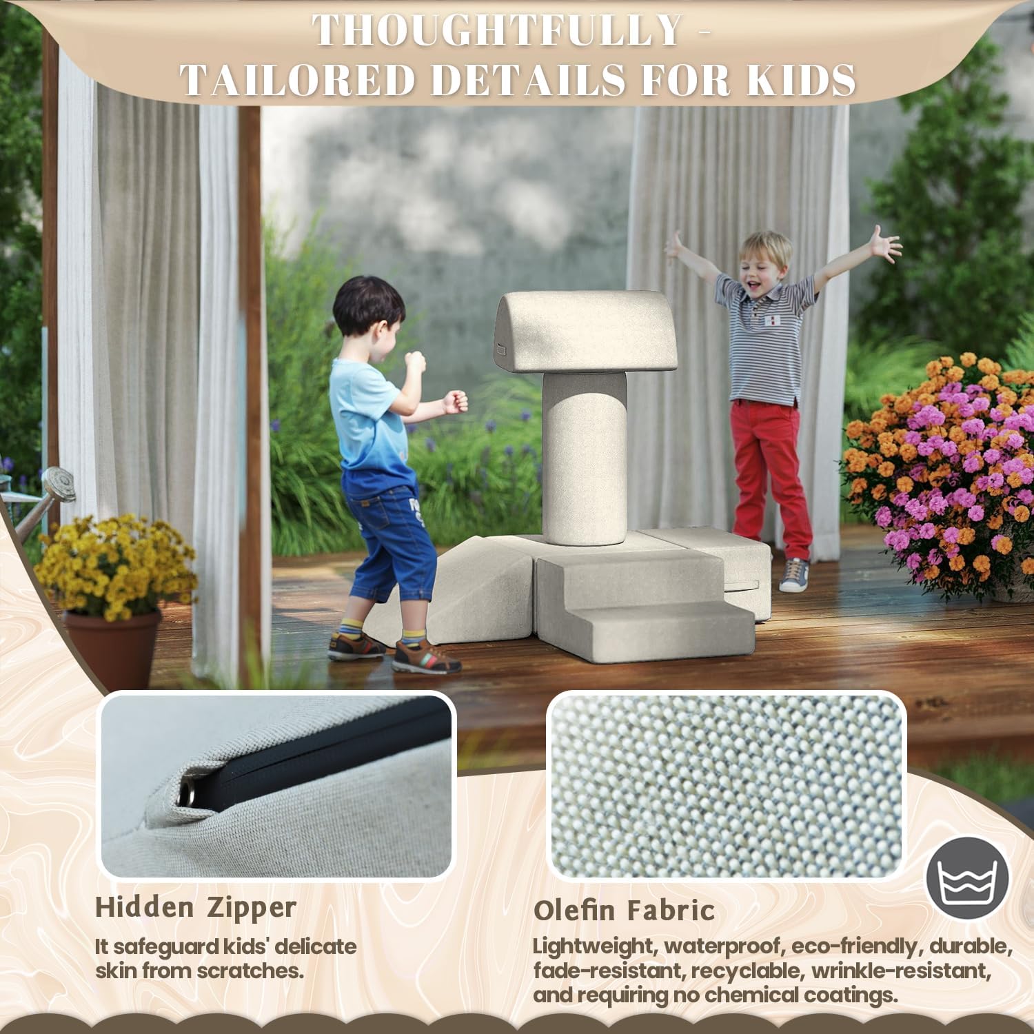 jela Foam Blocks 6Pcs Soft Play Equipment Waterproof Fabric, UV Resistant Toddler Climbing Toys Indoor& Outdoor Soft Play Climbing for Toddlers, Lightweight Climbing Blocks for Babies, Kids (Sand)