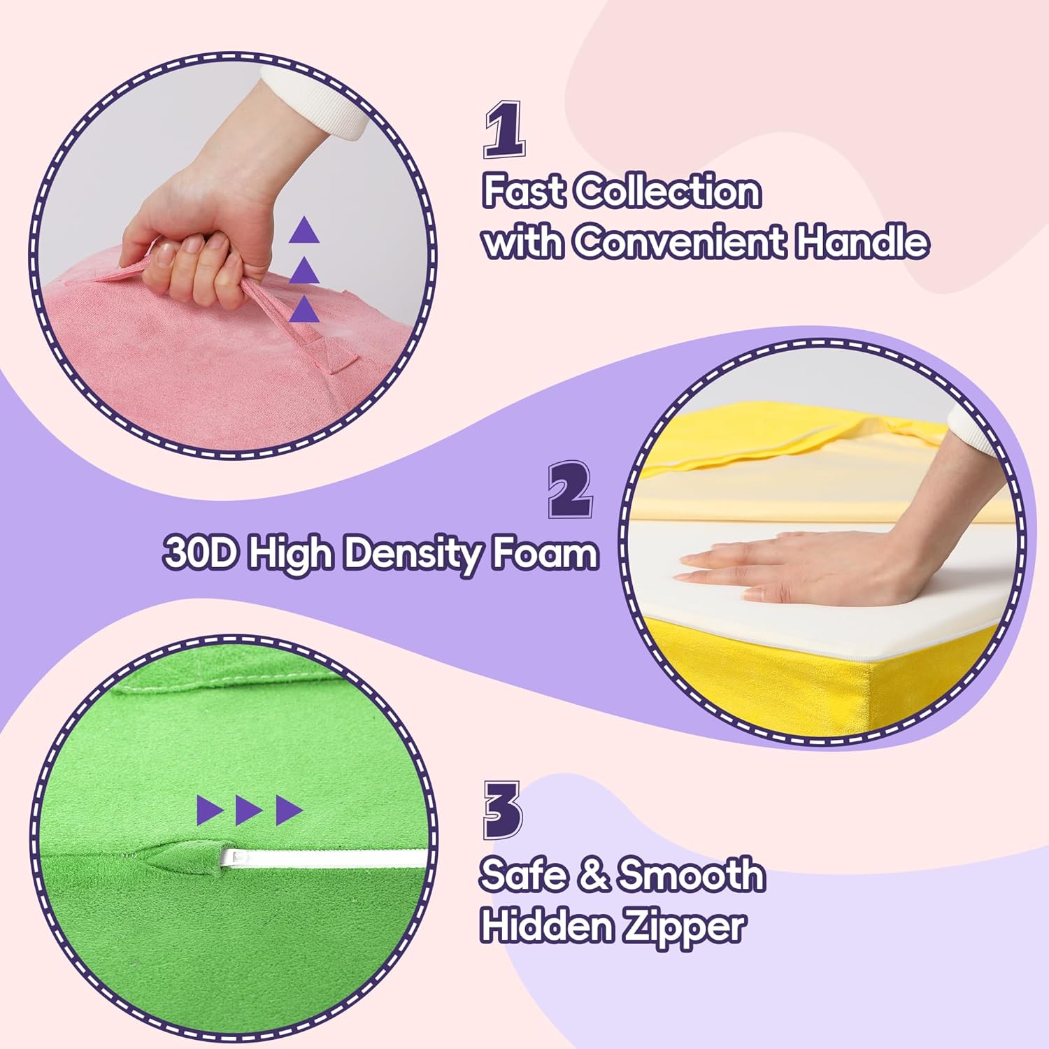 - Safe and Guaranteed: The kids climbing blocks are CPSIA & CPC certified, non-toxic, and tasteless fabric with ASTM approved. Each block is designed with hidden zippers to prevent scratches on delicate skin, and the structure is soft with no sharp edges, reducing the risk of bumps and bruises.