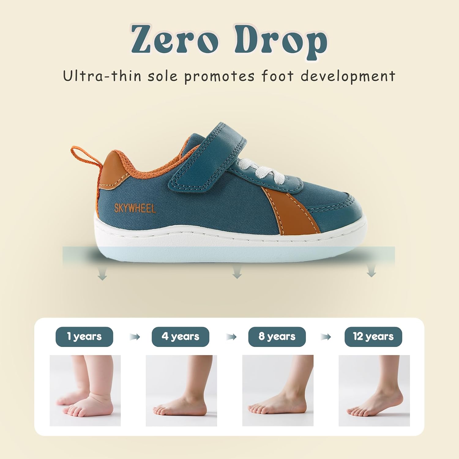 SKYWHEEL Toddler Wide Toe Box Barefoot Shoes Boys Sneakers Kids Tennis Shoes Comfort Lightweight Zero Drop Walking Shoe for Indoor/Outdoor Play