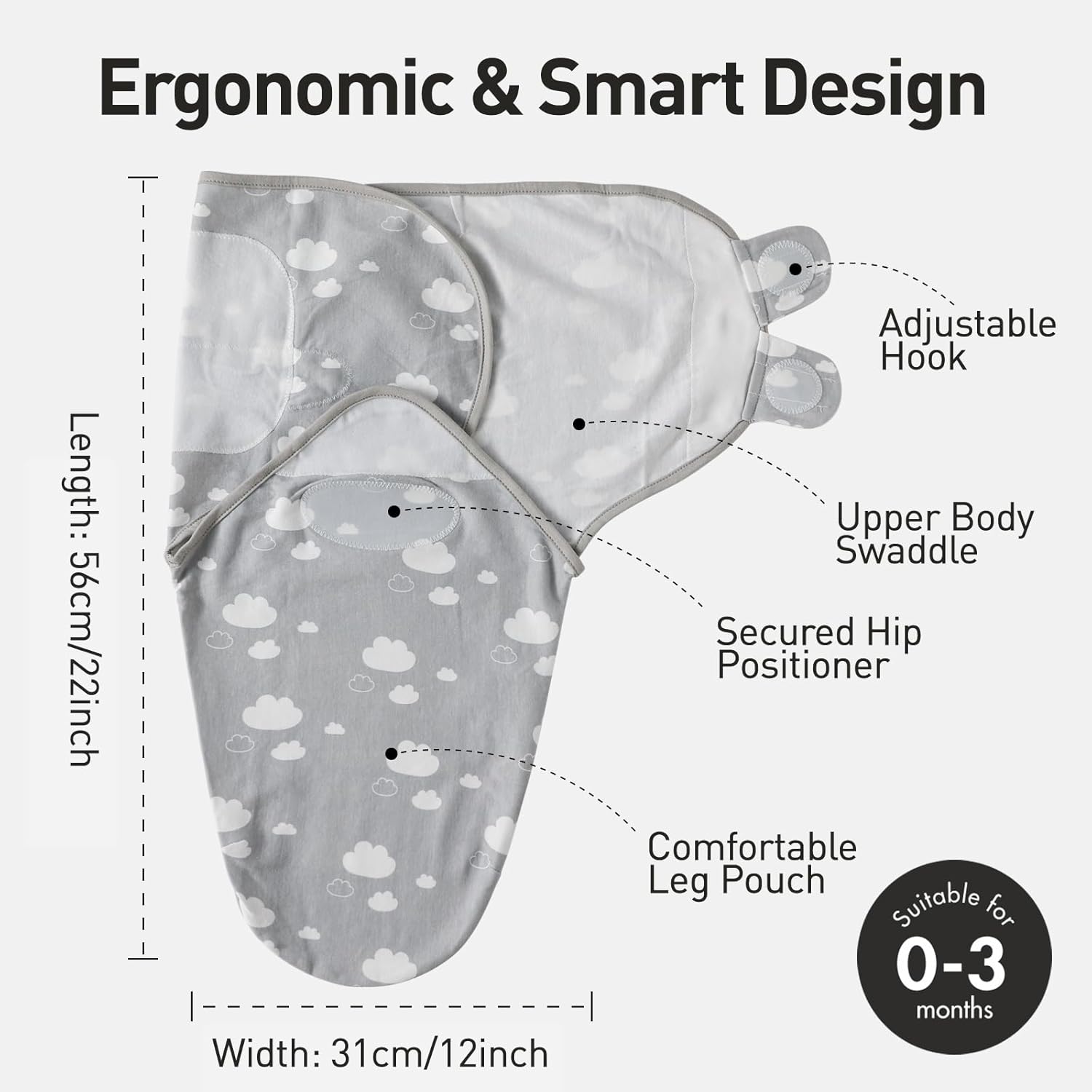 GLLQUEN BABY 3-Pack Swaddle Wrap blankets, Newborn Swaddles 0-3 months, Baby Swaddling Sack, Moon & Cloud, Infant Swaddle Blanket Wrap (Small/Medium)