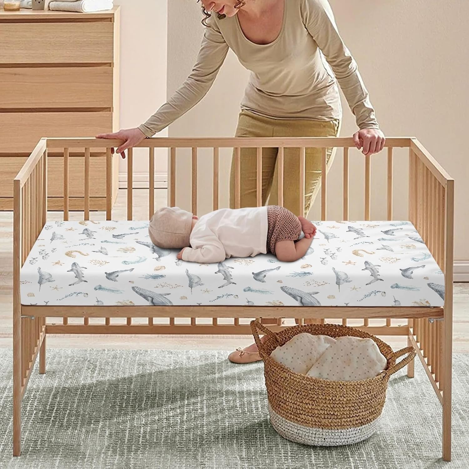 - Universal Size:Our baby bed sheet with a whale design is suitable for most standard crib and toddler bed mattresses, measuring 28" x 52" .The pocket ensures secure, full coverage and protection for your baby mattress