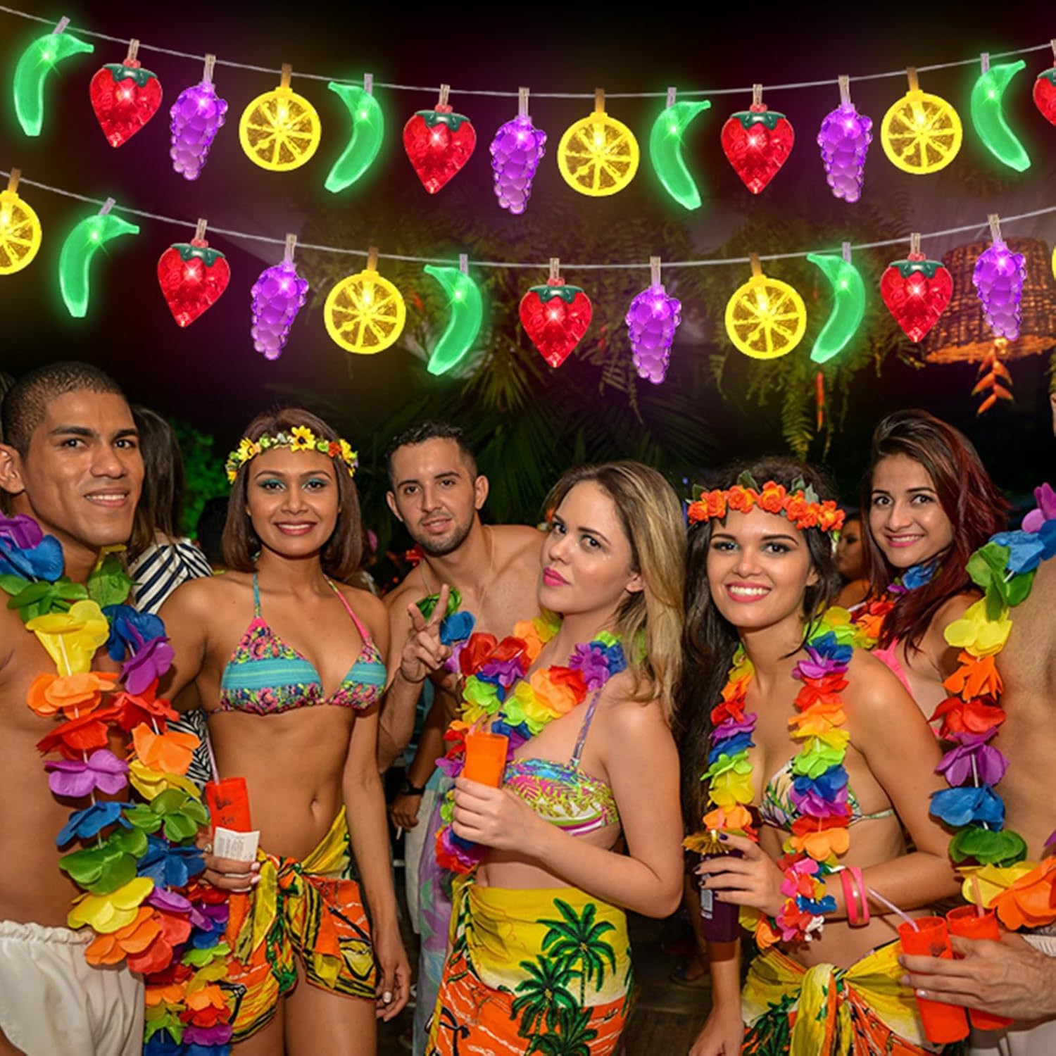 - 🍉 The Perfect Summer Gift: Summer fruits lights create a warm, inviting glow that sets the mood for any celebration. Pair these lights with Hawaiian-themed decorations like garlands, tiki torches, and palm leaves for an unforgettable tropical experience. Whether it's a birthday, anniversary, or just because, these lights make a thoughtful and unique gift for beach lovers, party enthusiasts, or anyone who loves summer vibes!