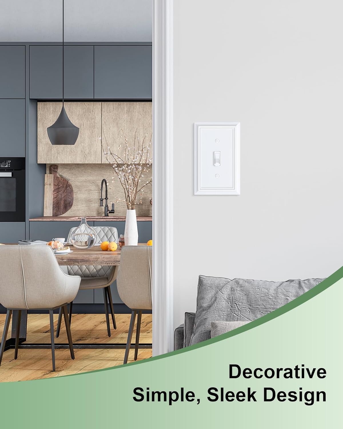 - Elevate Your Decor - Beautifully crafted with simple, clean lines and a classic pure white finish, our light switch cover plate seamlessly blends into any interior style. Its timeless design adds a touch of elegance and sophistication to your home decor.