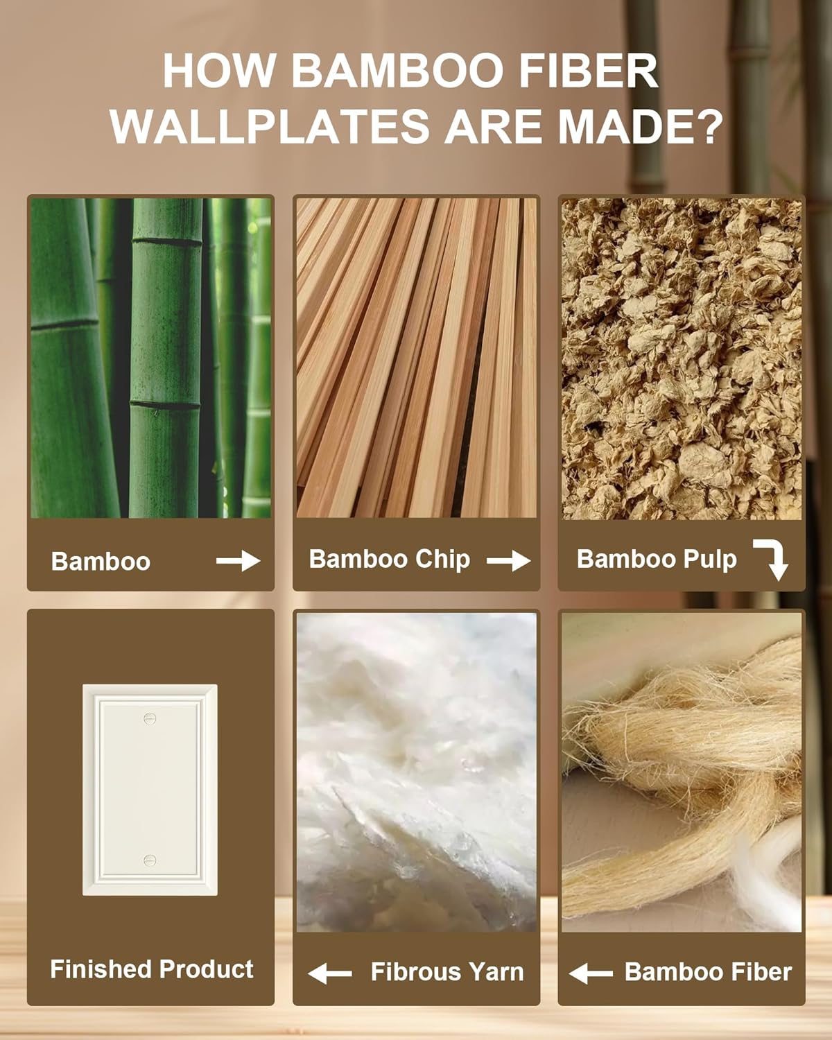 - Natural Bamboo Fiber Material - The wall plate covers are made from sustainable and environmentally friendly bamboo fiber, much thicker and more robust than plastic covers, easier to clean. Resistant to heat, moisture, and corrosion, ensuring it remain a stunning addition to your home for years to come.
