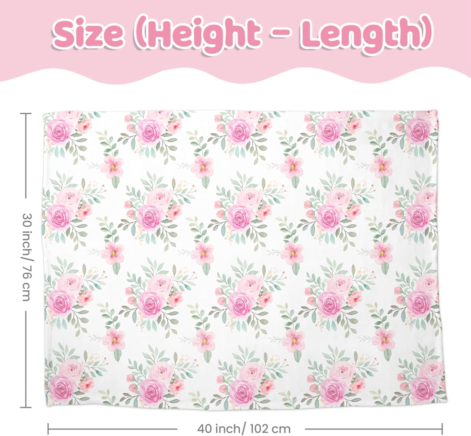 Floral Minky Baby Blanket 30 x 40 Inches for Girls, Soft Plush Receiving Blanket with Dotted Back, Gift for Newborn Infant Toddlers, Baby Shower, Christmas Birthday