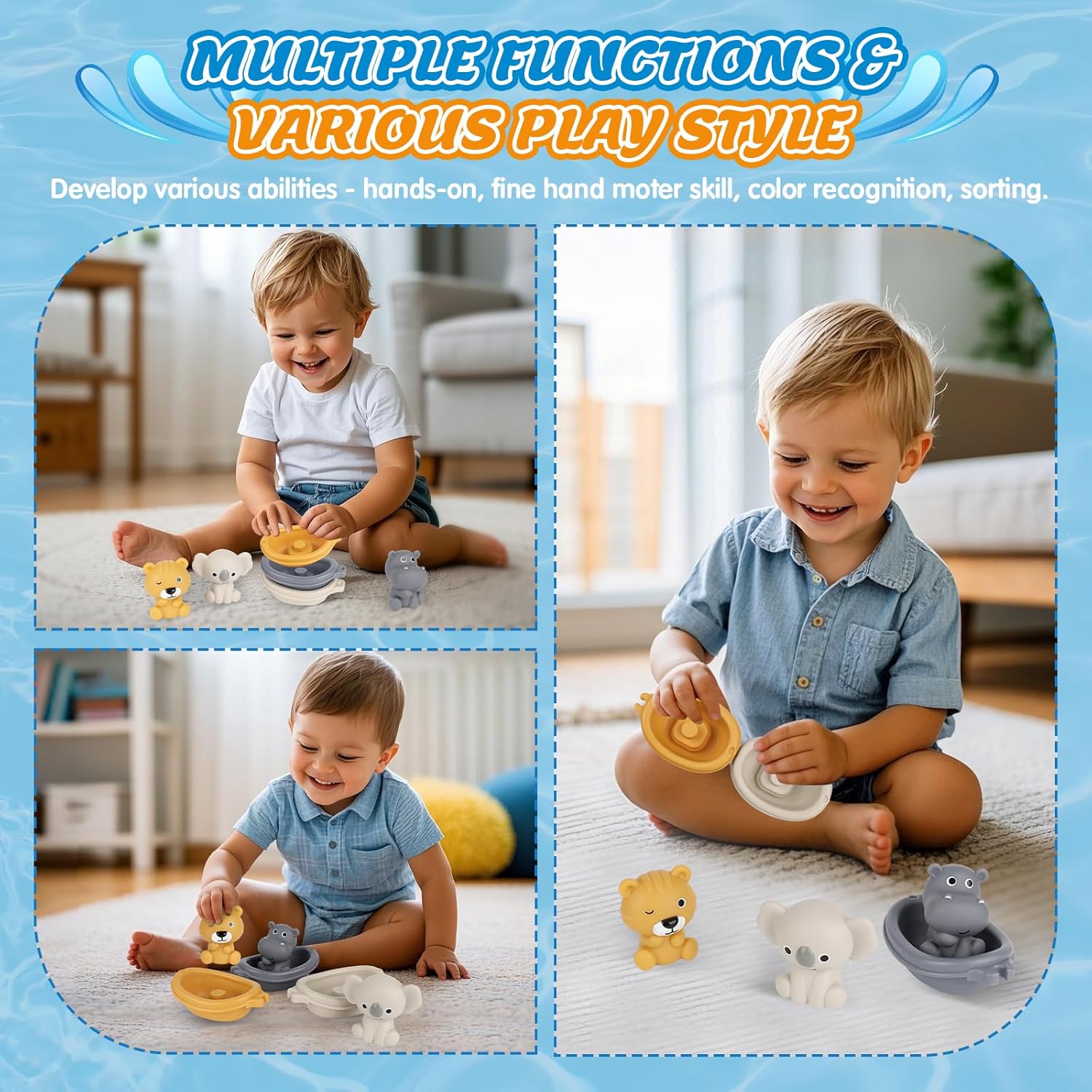- ใ๐๐๐ญ๐ก ๐๐จ๐จ๐ฅ ๐๐จ๐ฒ๐ฌ ๐ฐ๐ข๐ญ๐ก ๐๐ฎ๐ฅ๐ญ๐ข๐ฉ๐ฅ๐ ๐๐ฅ๐๐ฒใโOur bath toy set includes 3 finger boats and 3 finger puppets. The 3 boats can be used as stacking toys, while the 3 finger puppets are great for animal role - playing and storytelling. With this bath pool toys, bath pool time will be a fun and enjoyable experience for your little one! It's the perfect bath toy for toddlers aged 1-3, ensuring they have a blast in the bathtub or in the pool