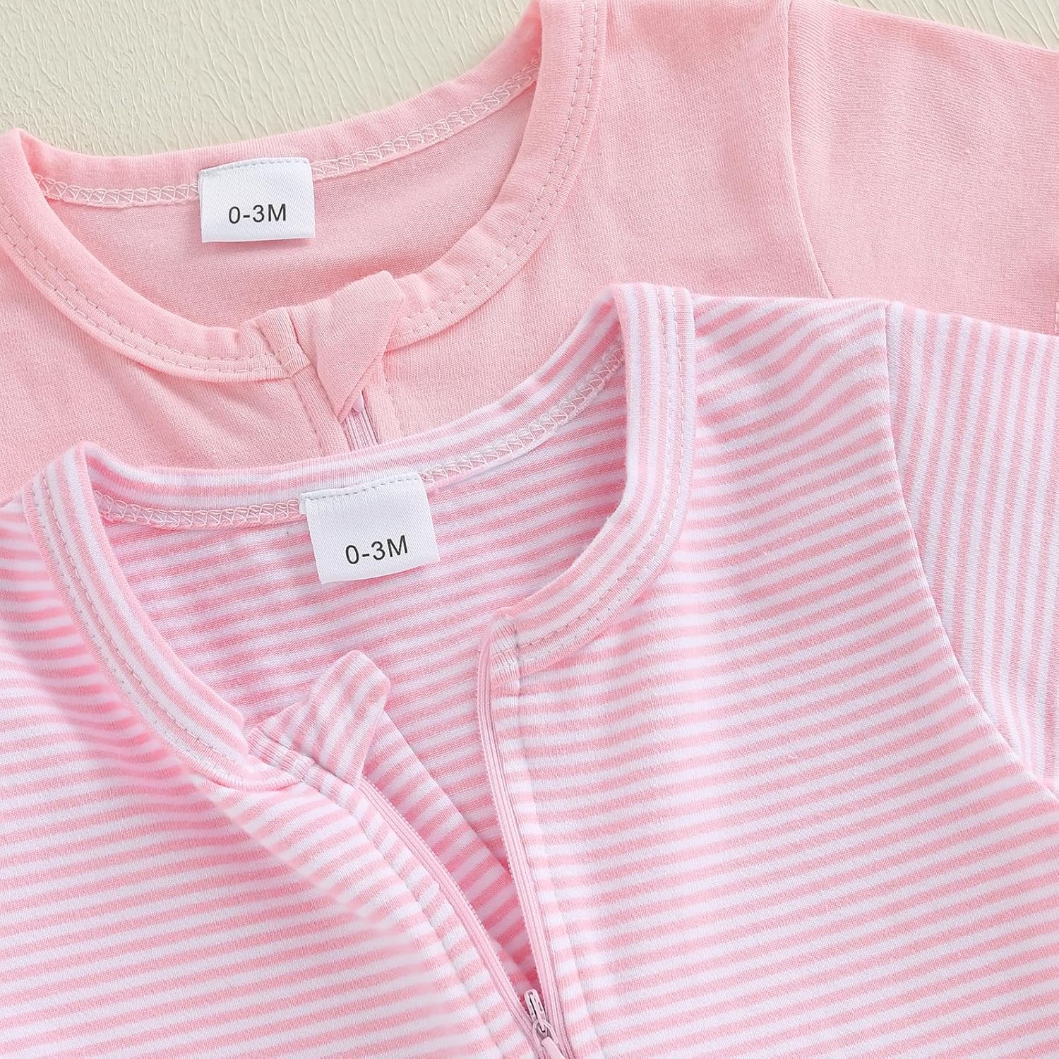 Merqwadd Baby Boy Girl 2 Pack Romper Short Sleeve Zipper Jumpsuit Plain Summer Clothes