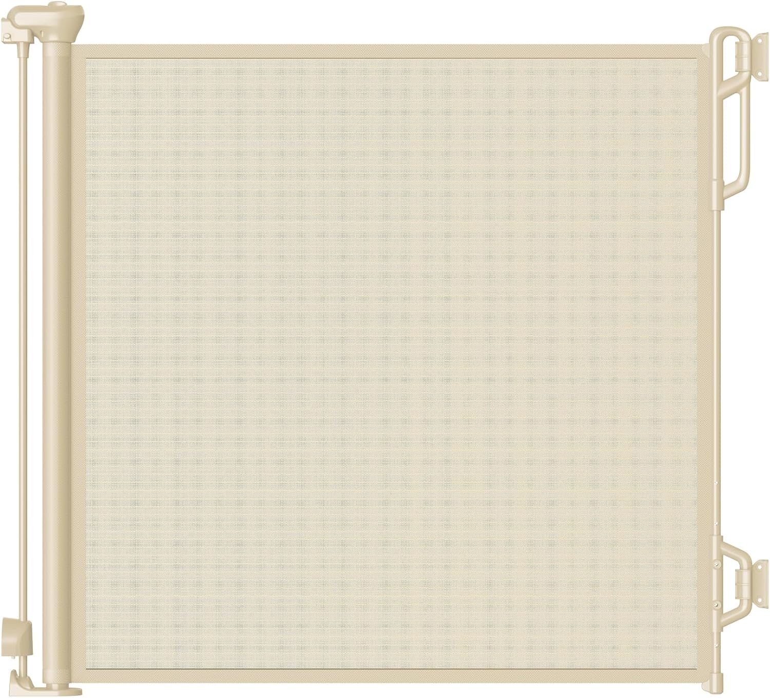 Retractable Safety Baby Gate or Mesh Dog Gate,Durable Portable Mesh Retractable Gate,Easy to Use for Stairs, Doorways, Hallways, Indoor, Outdoor, 33.5" Tall, Up to 65" Wide, Cream