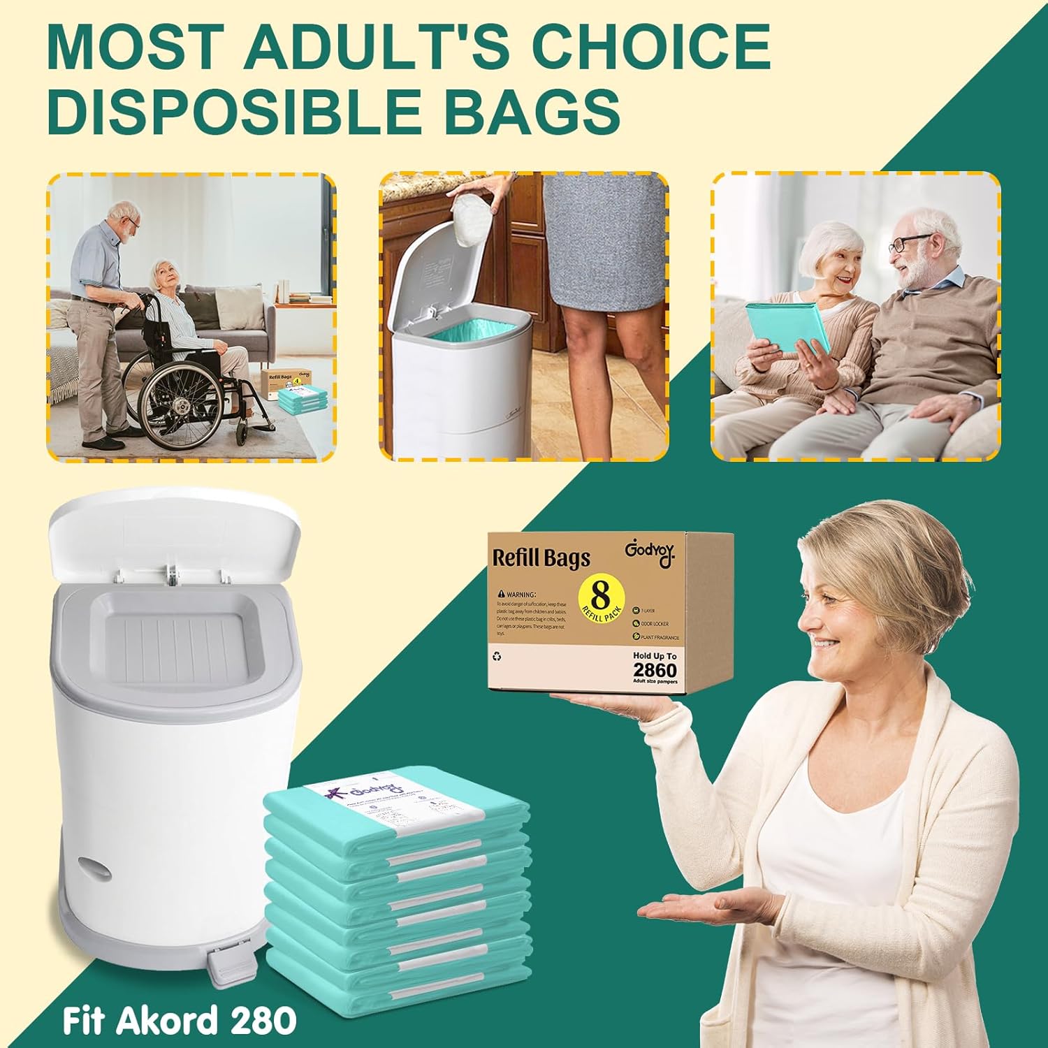 - 【Compatible with Janibell Akord 280 Slim Diaper System】Our Adult diaper pail disposal liners refills compatible with Janibell Akord Diaper Disposal Slim Model, providing clean, quick, and hygienic disposal of adult diapers and say goodbye to mess and odors!