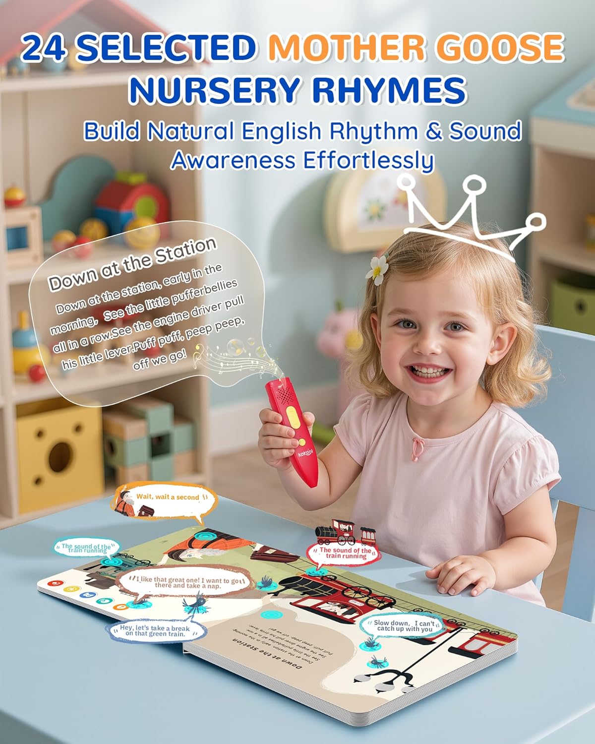 KOKODI Talking Pen Books Set, Interactive Audio Nursery Rhymes with Learning Pen, Educational Sensory Toy, Early Learning Gift for Toddlers Kids, Birthday & Christmas Gifts for Boys Girls Age 2-6