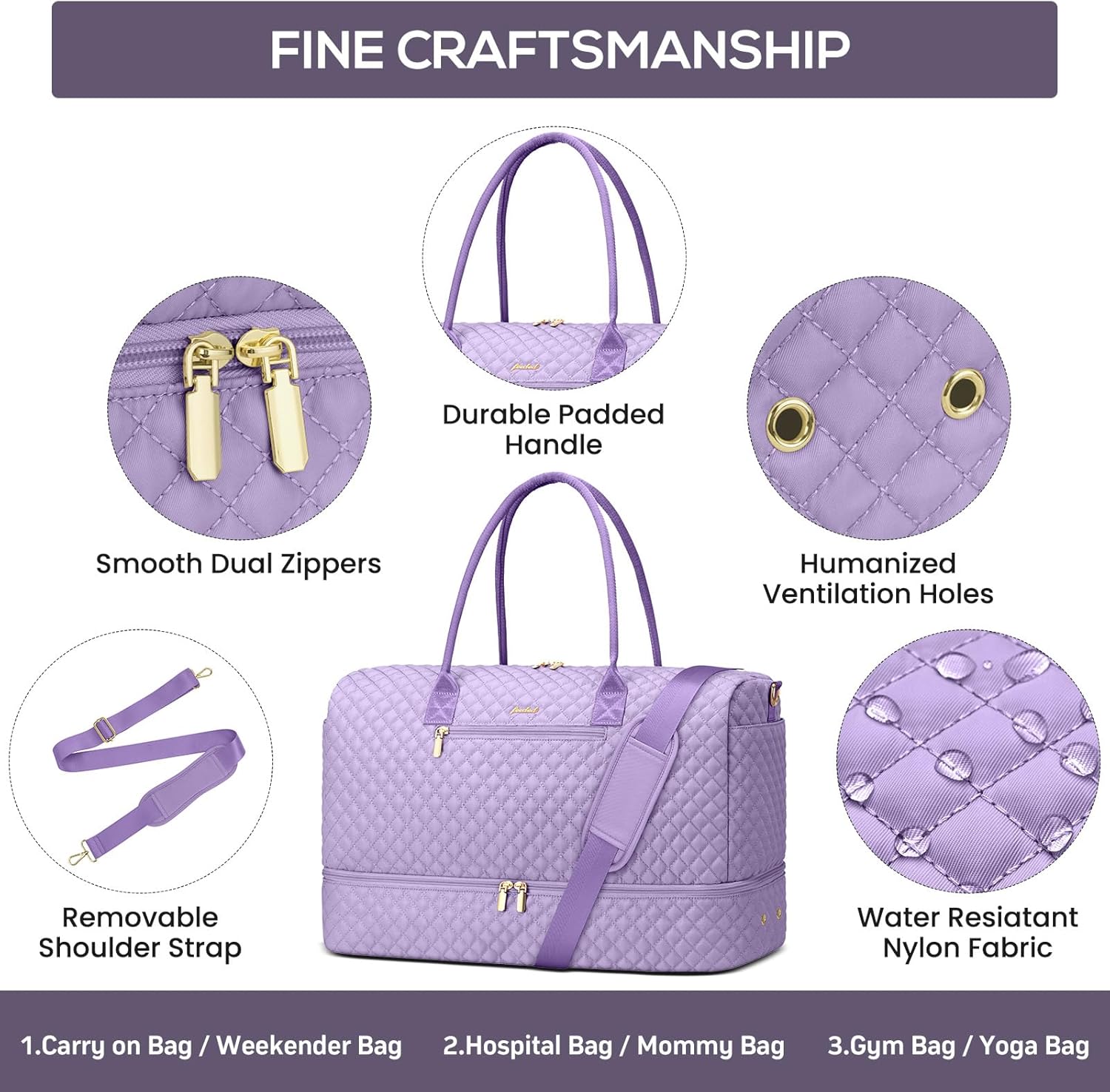 Travel Bag Weekender Bags for Women - Carry on Overnight Bag with Shoe Compartment Duffle Bag with Laptop Pocket Light Purple