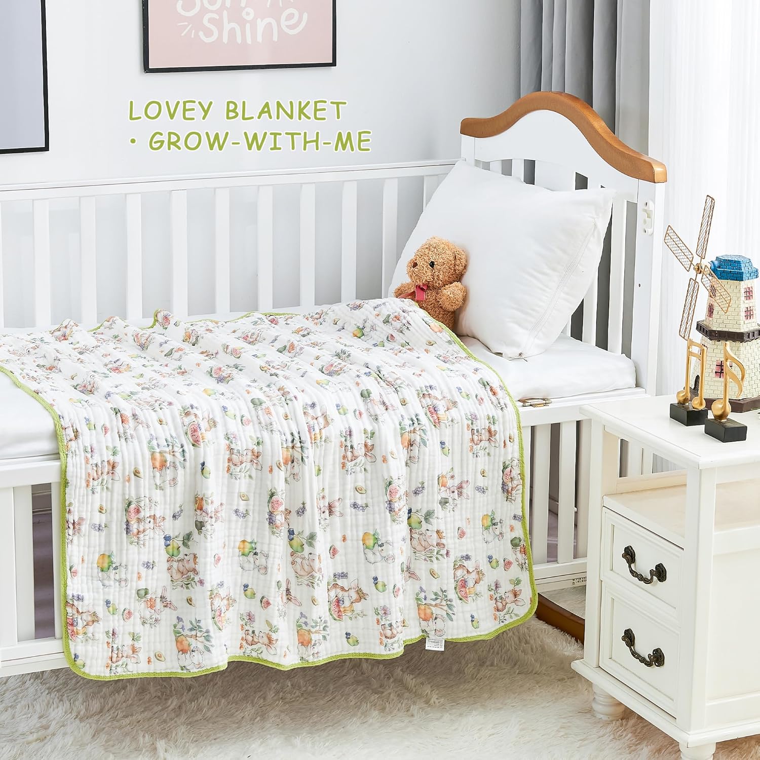 - Seasons-Proof Comfort Genius: Unlike thin summer blankets that lack coziness or heavy quilts causing overheating, our 6-layer cotton muslin is nature's thermostat. Breathable holes circulate air in heatwaves (perfect for tummy time!), while dense weave traps warmth when temperatures plunge. The ultimate lightweight toddler blanket for daycare, travel blanket for road trips, or cooling stroller cover – 365 days of perfect sleep