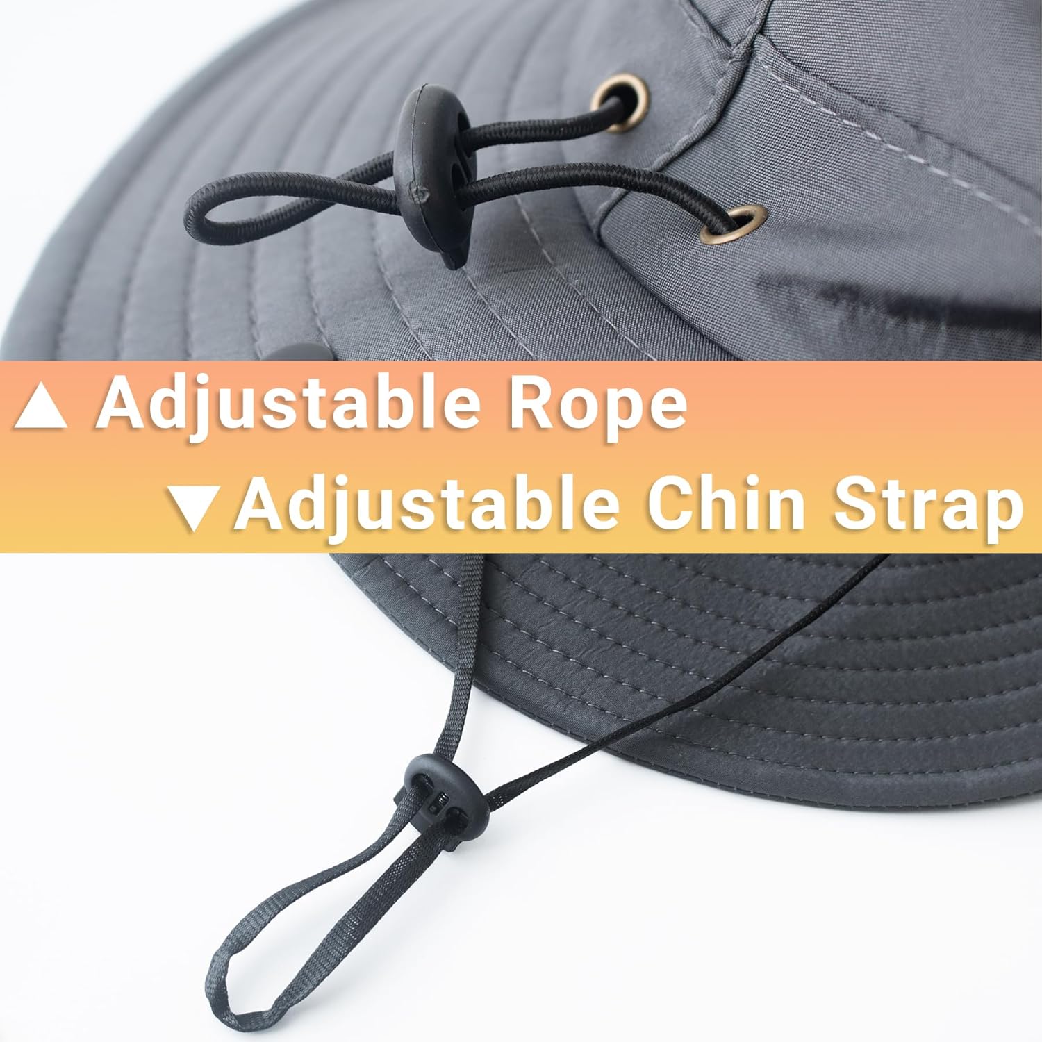 - ADJUSTABLE & WATERPROOF: The quick-drying fishing hats fit for most men and women, featuring an adjustable drawstring and chin strap. The sun hats can stay well on your head and withstand some drizzling rain in rainy days