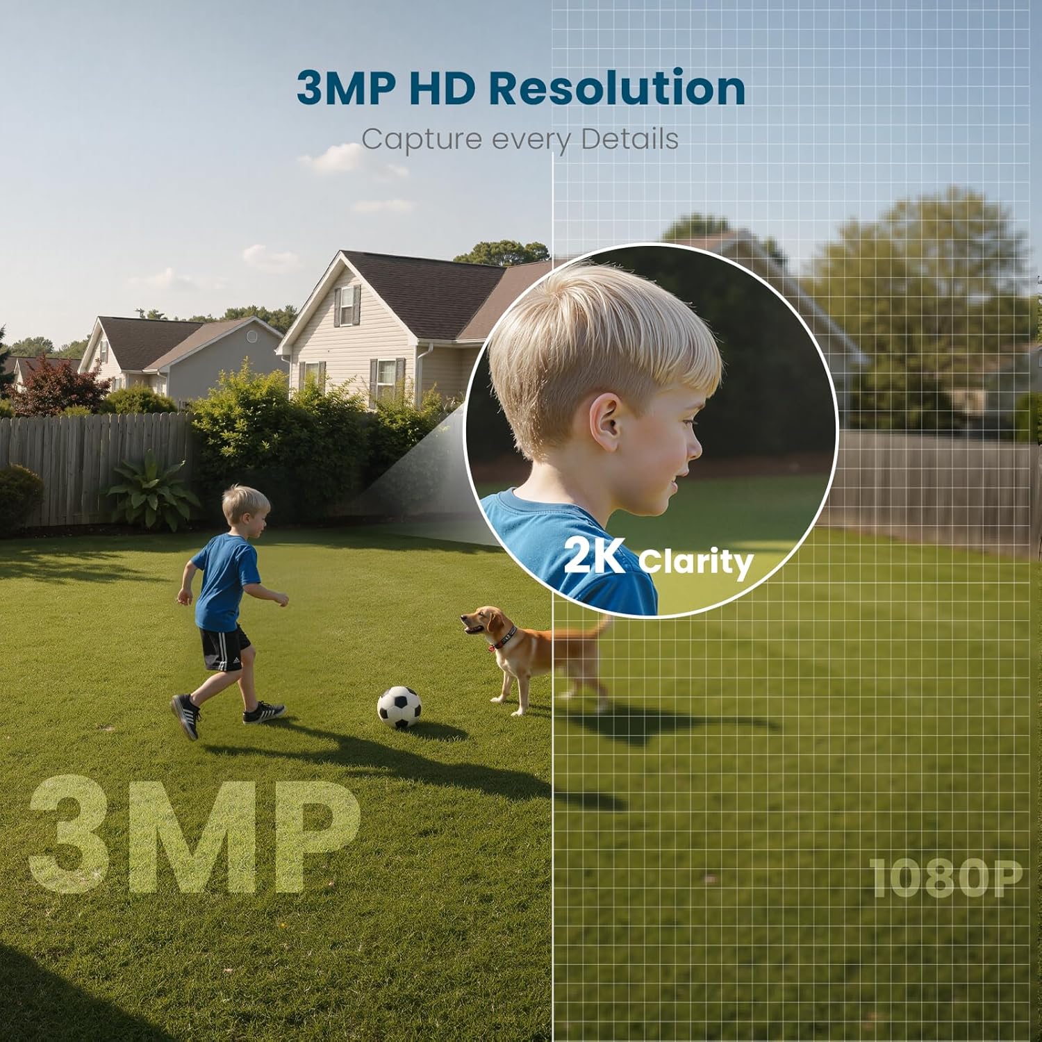 - 【2K FHD Resolution & Color Night Vision】Litokam security camera outdoor has 2304 x 1296 pixels, 4 times the resolution of 1080P, providing wide viewing angle, 2K 3MP HD real-time video and images. This outdoor camera has two night vision modes: full color and infrared night vision, equipped with 6 pieces of 850mm infrared lights and 2 LED white lights, with a visible range of up to 10m/33ft, it can clearly capture any area you want to monitor even at night.