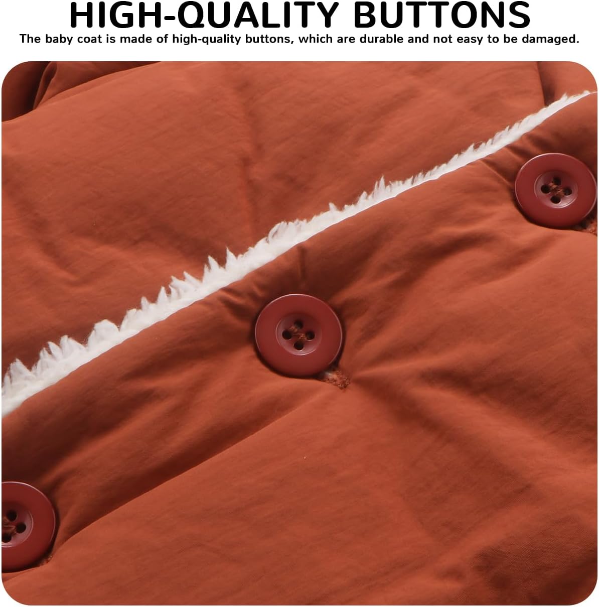 - Exquisite design: baby puffer with hood jacket adopts fashion design, hairball cap design makes the baby appear more cute, new button closure design,plush lining continues to provide warmth to baby, keep your baby full of vitality in winter