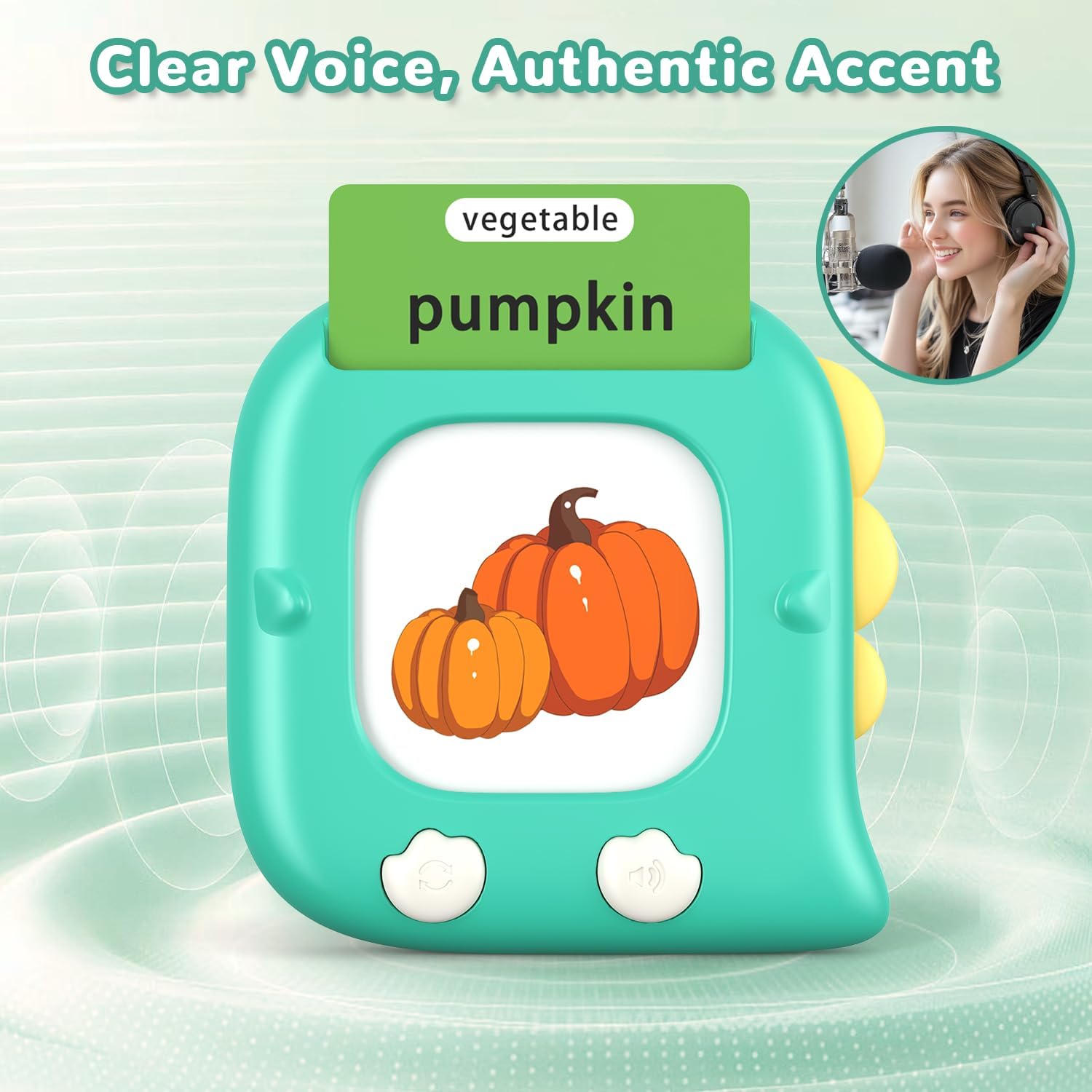 Kidzdo Dinosaur 254 Words Talking Flashcards, Birthday Gifts for 2 3 4 5 6 Years Old Boys and Girls, Educational ABCs LearningToy, Pocket Speech Language Therapy Toys for Autism Kids Ages 1-6, Green