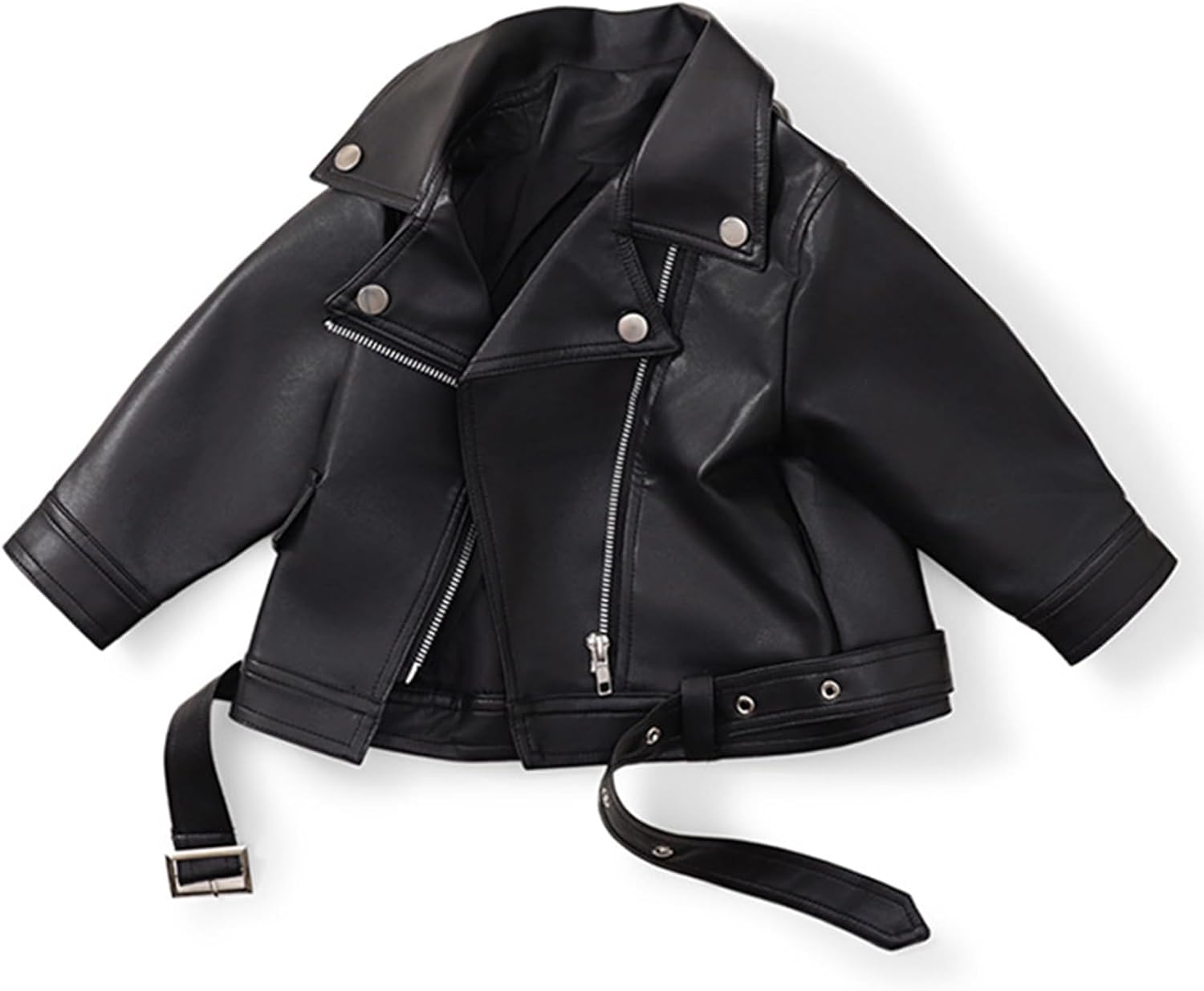 - Cute design: toddler lapel motorcycle jacket adopts fashion design, simple and slim design with a belt to make the baby more handsome, integrated oblique zipper design, suitable leather outerwear can let the baby match different clothes