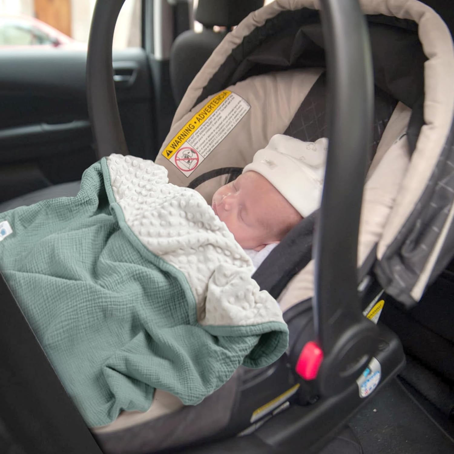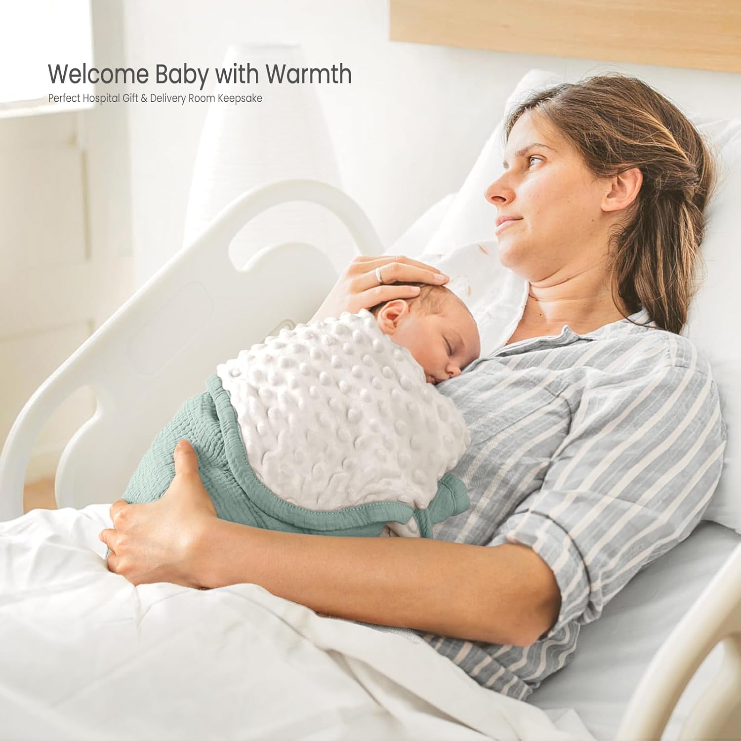 lulumoon Baby Blanket for Newborn Receiving: Minky Dot & Muslin Lightweight - Thermal Blanket Gift for Baby Shower & Hospital Welcoming 30"x40"(Sage)