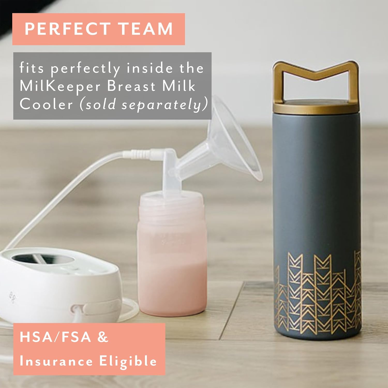 - SMART DESIGN FOR PEACE OF MIND - Keep an eye on milk levels through the semi-transparent window, label easily with a ballpoint pen or chalk marker, and store bottles conveniently in the MilKeeper Portable Breast Milk Cooler. When you’re on the move, simply attach your pump or nipple for quick pumping or feeding wherever you are.