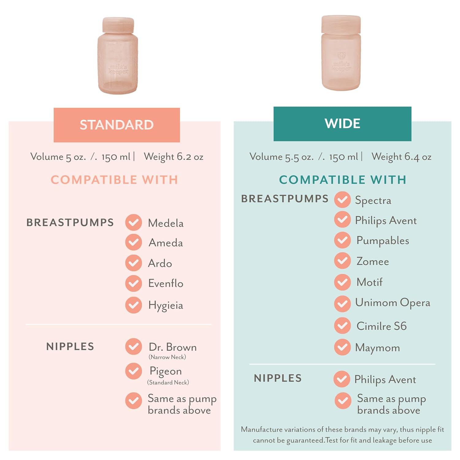 - COMPATIBILITY - Our wide-neck bottles fit Medela Symphony, Harmony, Pump-in-Style, Sonata, Ameda, Ardo, Hygeia, and Evenflo Advanced and Pocket pumps. They’re also compatible with Medela, Evenflo Wide Neck, Pigeon Wide Neck, and Dr. Brown Narrow Neck nipples, making them easy to use with the feeding accessories you already trust.