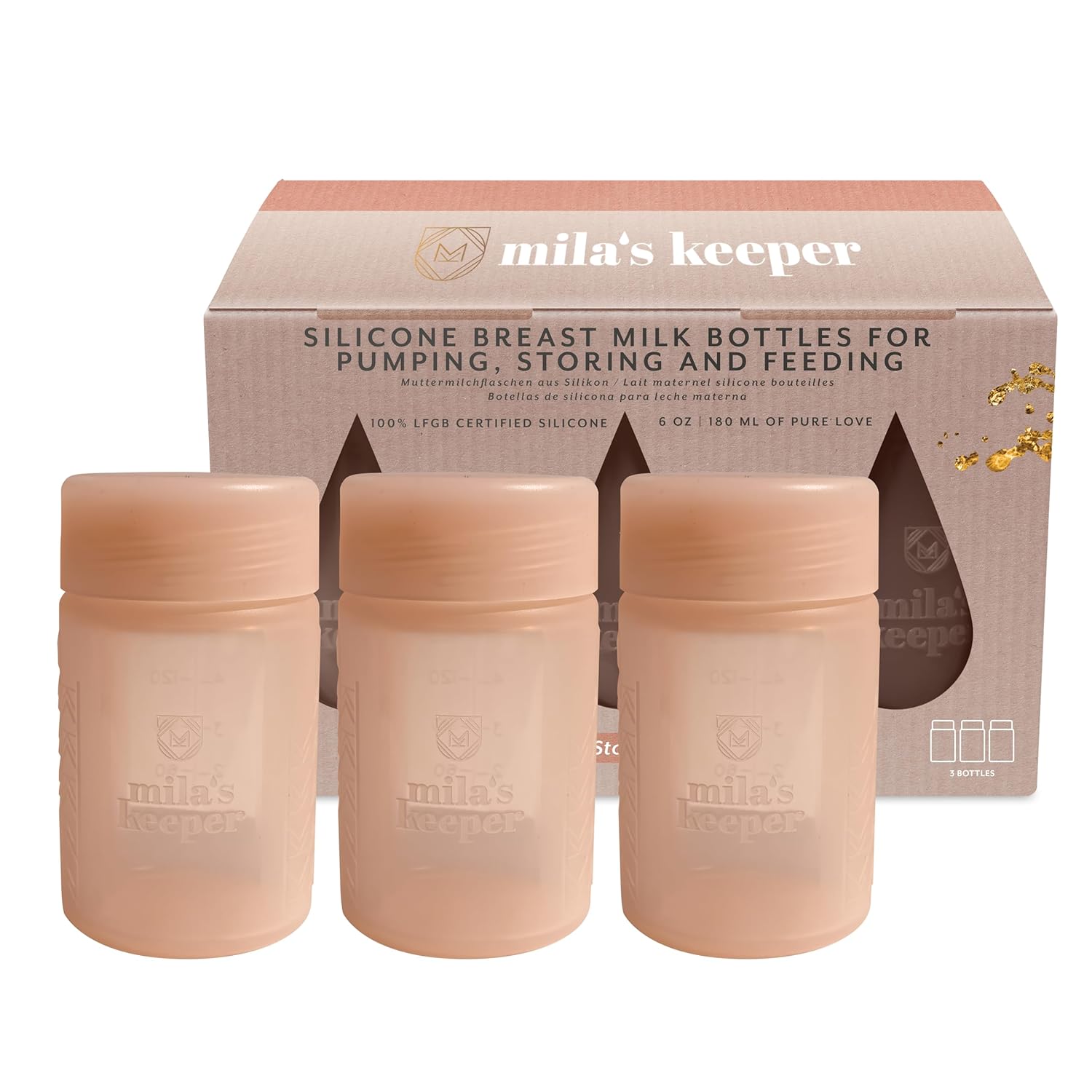 - FOR ON-THE-GO BREASTFEEDING MOMS — Mila's Keeper 3-in-1 silicone breast milk storage bottles are perfect for pumping, storing, and feeding all in one bottle — no adapter needed, which means more convenience and fewer parts to clean. Made from 100% LFGB-certified silicone with our patented leak-safe lid system, they’re completely plastic-free and free from harmful chemicals, giving you peace of mind that nothing unwanted will come into contact with your milk.