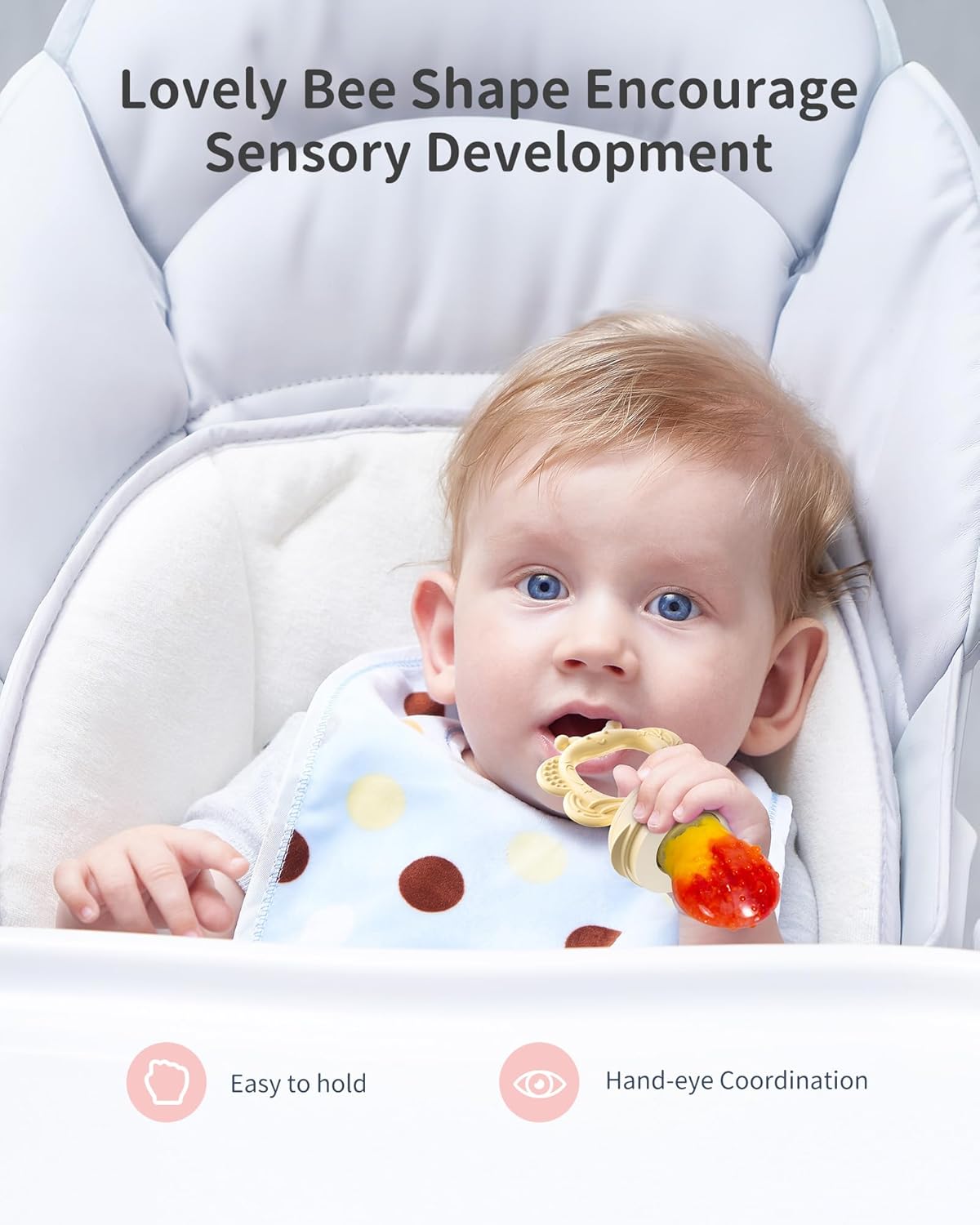 - Support Independent Feeding: Our Feeder is equipped with an easy-to-grasp ring suitable for little hands, fostering self-feeding proficiency and refining hand-eye coordination. Babies delight in sucking on it, aiding in their development of self-feeding abilities, making it a perfect choice for baby-led weaning.