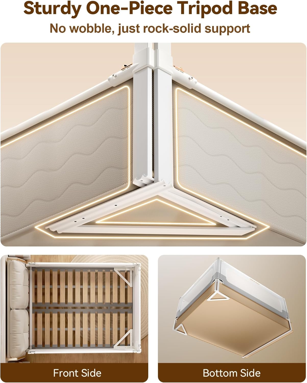 - Nail-Free Installation for All Beds- Oneya Baby’s toddler bed rails for full size bed feature an innovative nail-free design with a golden-triangle integrated support structure, preventing bed frame damage and ensuring easy setup. Crafted from thickened, hardened carbon steel tubes, the bed rails for toddlers outshine ordinary iron rails in strength and safety. This robust build keeps the bed stable, withstands strong pushes, and offers unwavering protection. So you can sleep soundly, too.