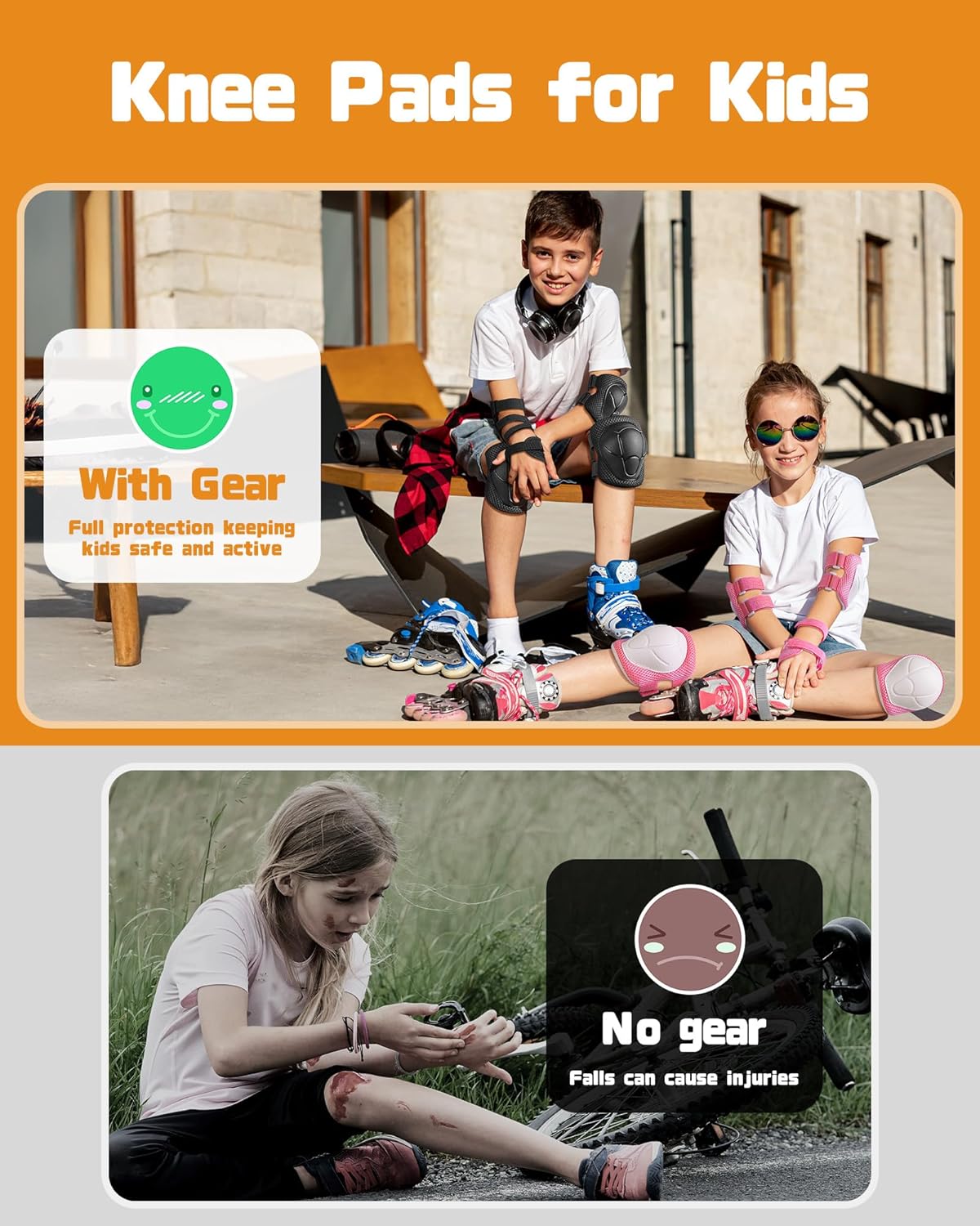 - 【Children Recommended Age】Kids knee pads and elbow pads set are suitable for children aged 3-8 years old, with a recommended weight of 29-77 lbs (13-35 kg), Adjustable Velcro straps that adjustable Velcro straps to fit the joints for maximum comfort.