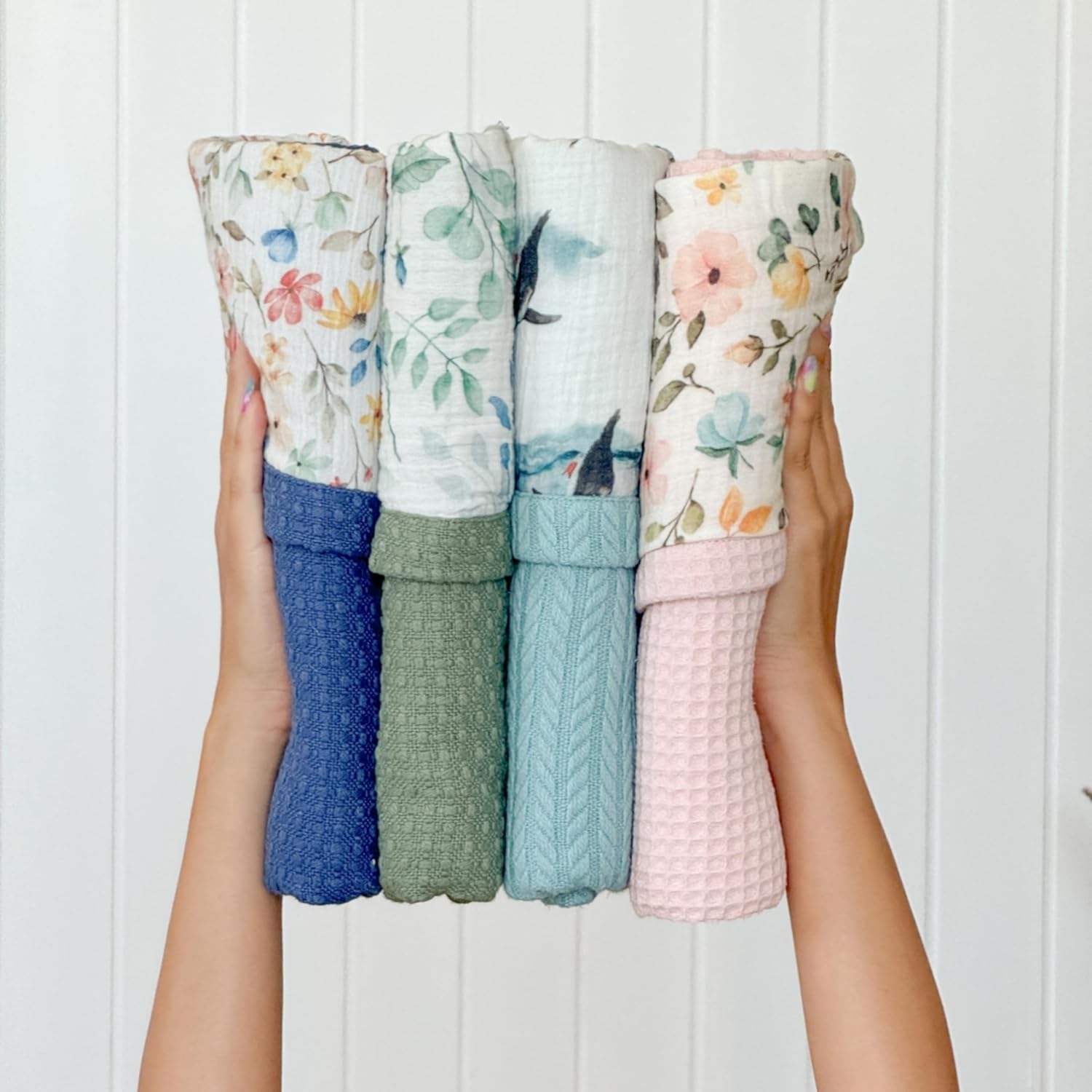 - ULTRA-SOFT ORGANIC COMFORT - Wrap your baby in the gentle embrace of our waffle baby blanket, crafted from 100% organic cotton, this floral print blanket offers a breathable and soothing touch against delicate newborn skin, ensuring a cozy and peaceful rest.