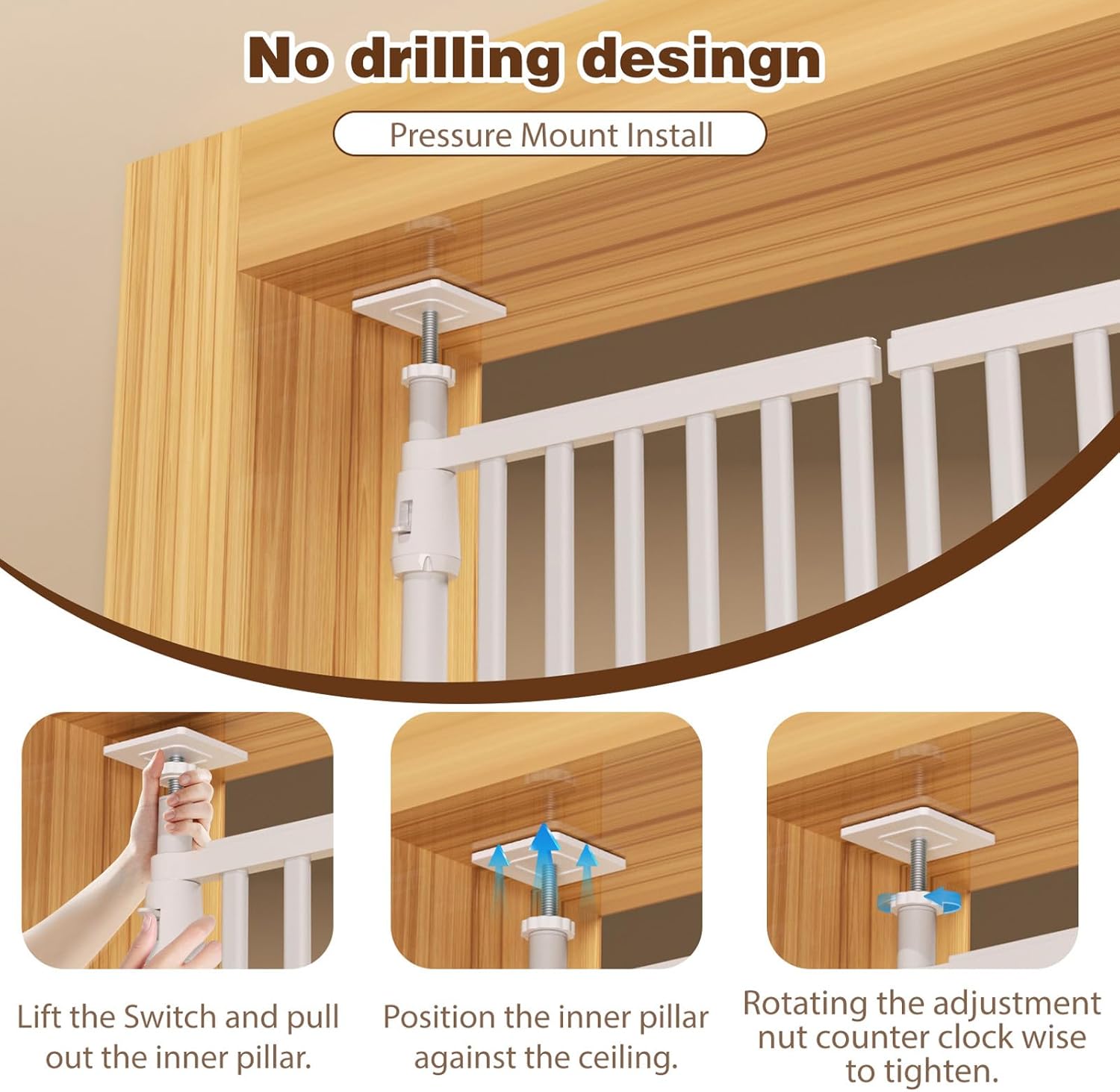 - Innovative Installation - No Tools : Our pet door is equipped with 2 extendable support rods, simply extend the support rods to mount—no drilling or wall damage! Replacing traditional wall pressure installation, it is very suitable for renters and homeowners who want a sturdy barrier without permanent marks.